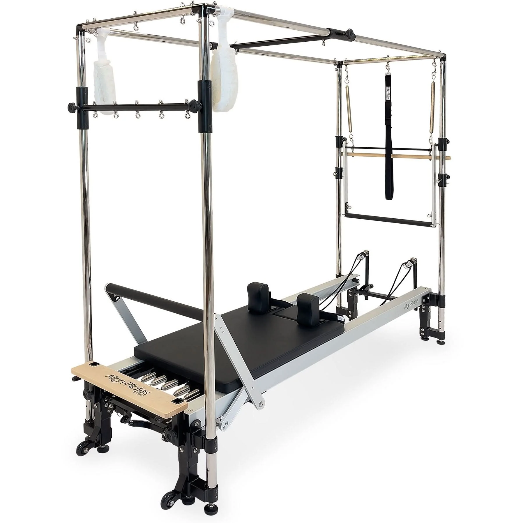 The Align-Pilates C8-Pro Reformer with Full Cadillac offers a complete Pilates solution for home or studio use. Featuring a robust aluminum frame, smooth gliding system, and adjustable spring resistance, it ensures a customized workout for all fitness levels. The Full Cadillac attachment expands exercise possibilities, enhancing core strength, flexibility, and full-body conditioning. This professional-grade reformer delivers an exceptional Pilates experience with versatility and durability in a space-efficient design.
