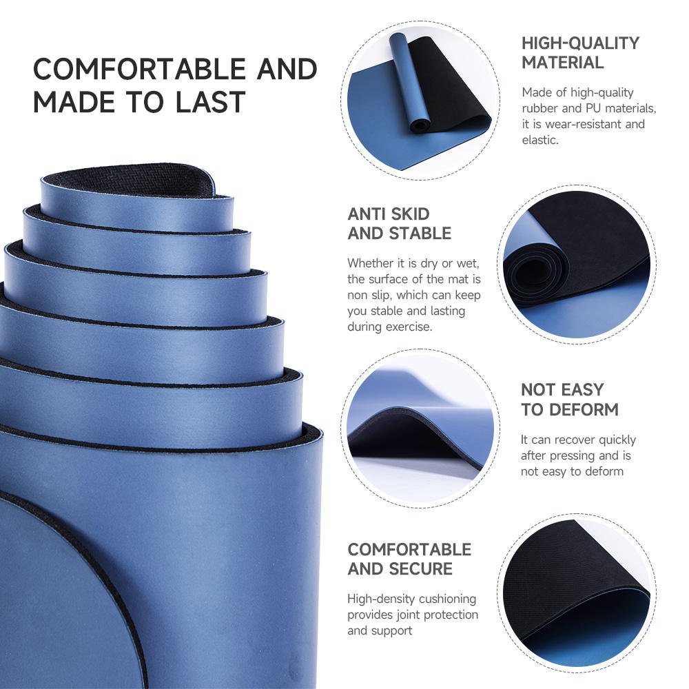 This is a high-end yoga mat with high skid resistance and comfort that can keep users from sliding while practicing yoga. It is made of PU and rubber materials. With its super grip, support is safer. It comes in three different colors, making it the perfect option for yoga training.