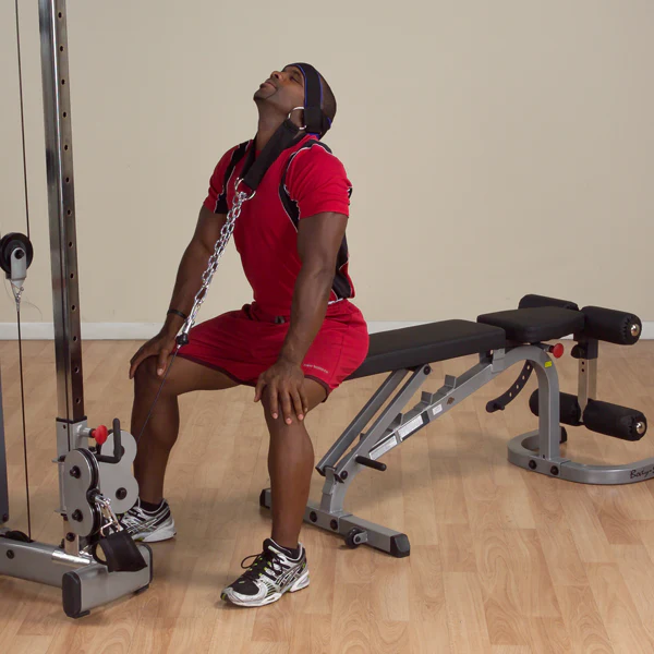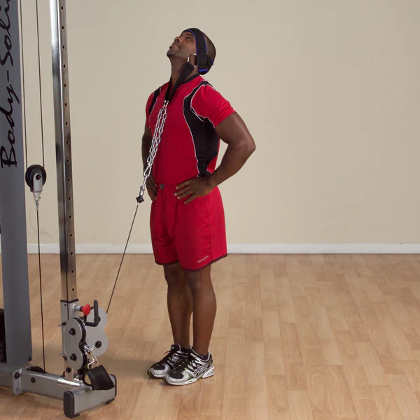 Recommended for all athletes and specifically designed for those in contact sports, head harnesses condition the neck and upper back muscles. Features include the finest quality materials, extra-heavy D rings and steel chain. Completely padded with high density neoprene to absorb shock and prevent cuts, chafing and abrasion. Use them with free weights or hook them to a high or low pulley on a machine.