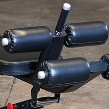 Heavy-duty foam rollers keep legs steady for proper form and effective muscle engagement.
