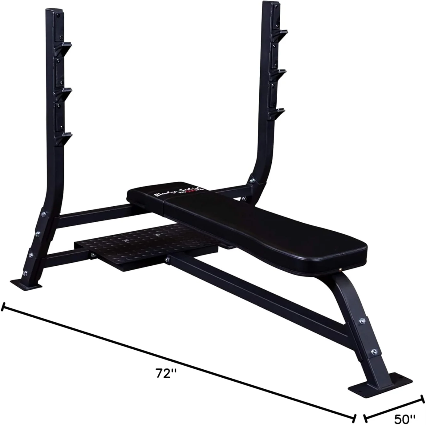 Full-commercial Olympic Flat Bench built for heavy use environments.