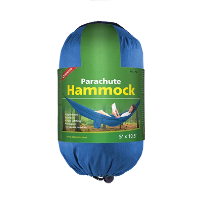 This hammock is a great addition to any base camp, festival, at the cabin, or for travel. Compact, it fits inside the integrated stuff sack which doubles as a pocket for small items. The additional side pocket is ideal for storing books, tablets, and water bottles. It’s available in blue, or green.