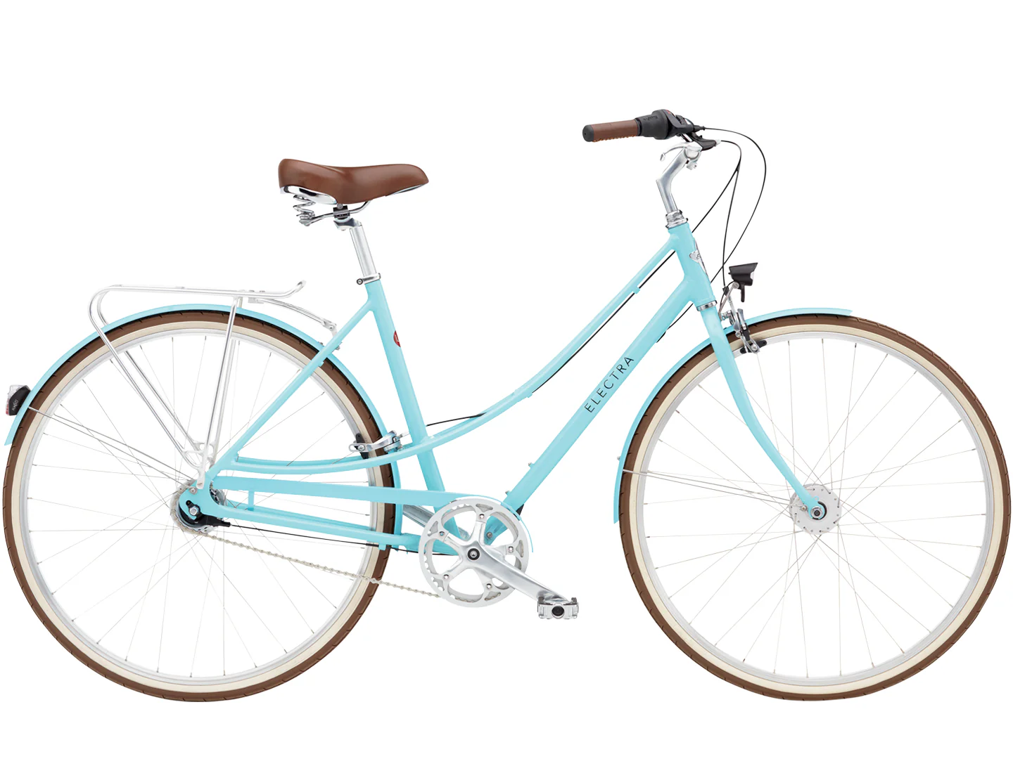 – Classic color combination – chrome components, brown tires, saddle and flu.