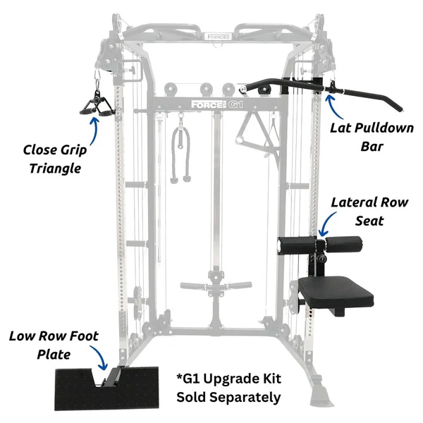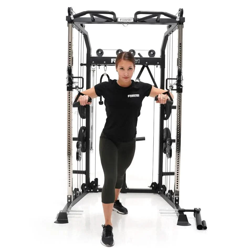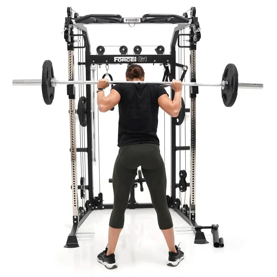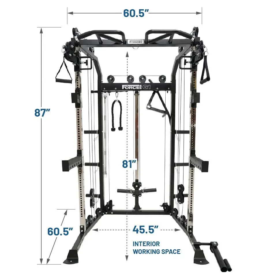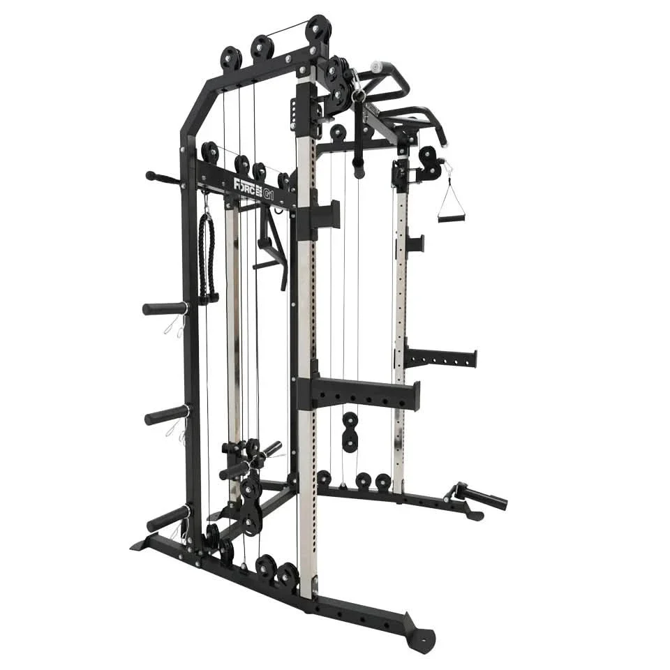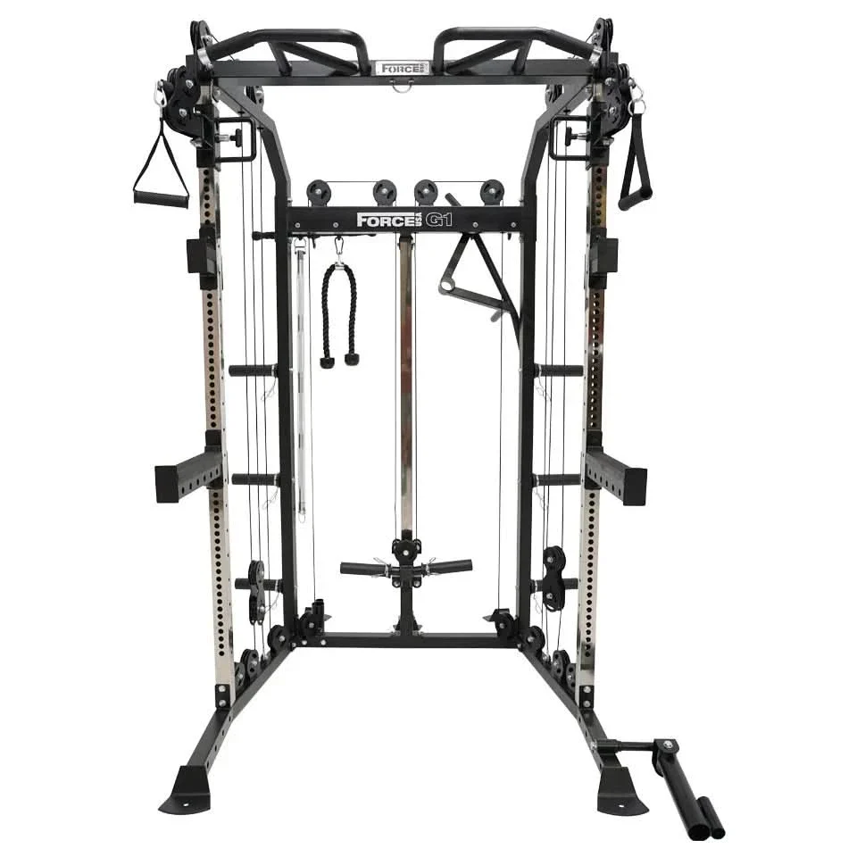 The Force USA® G1™ All-In-One Trainer combines a multi-functional trainer, power rack and a cable pulley system into an all-in-one compact strength-training machine.