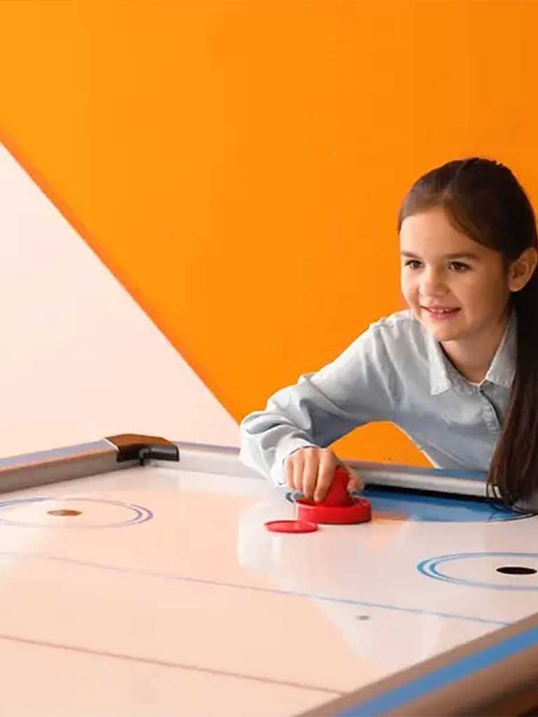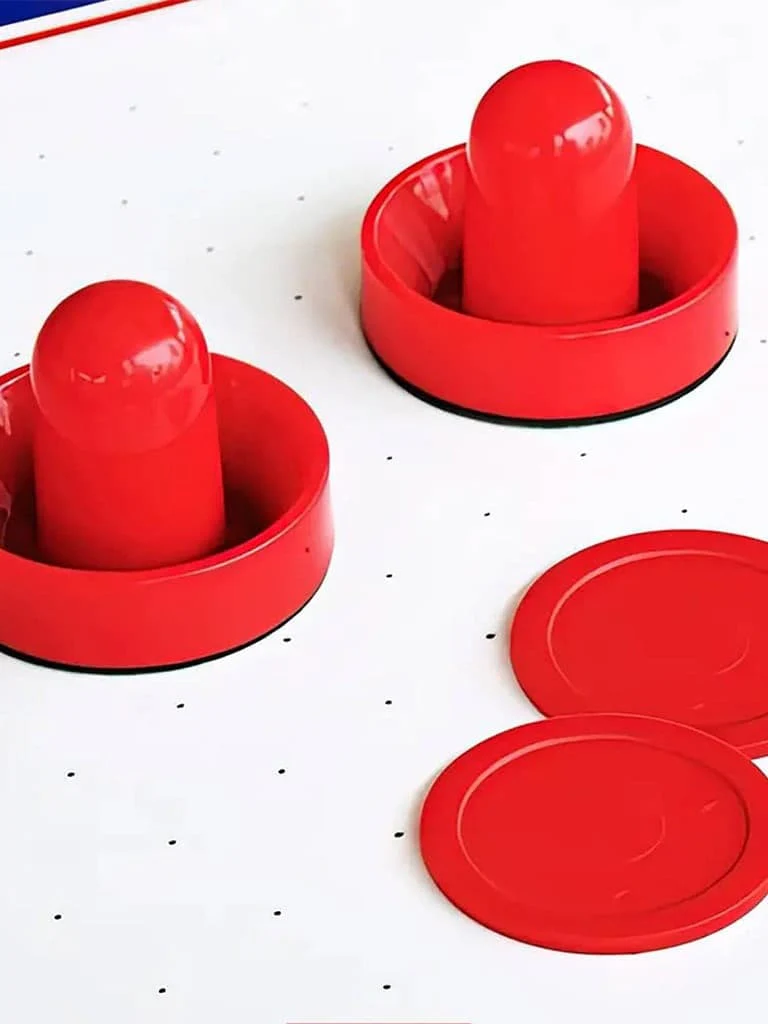 The 6ft Air Hockey Table has a two-sided puck and a smooth playing surface with graphics meant to imitate an ice hockey rink. Two pushers and two pucks are included, and the table has leg levelers to guarantee a level playing surface. With a triangle electronic scorer and timer in a professional manner, the timer can count down for 10, 15, or an indefinite amount of minutes.