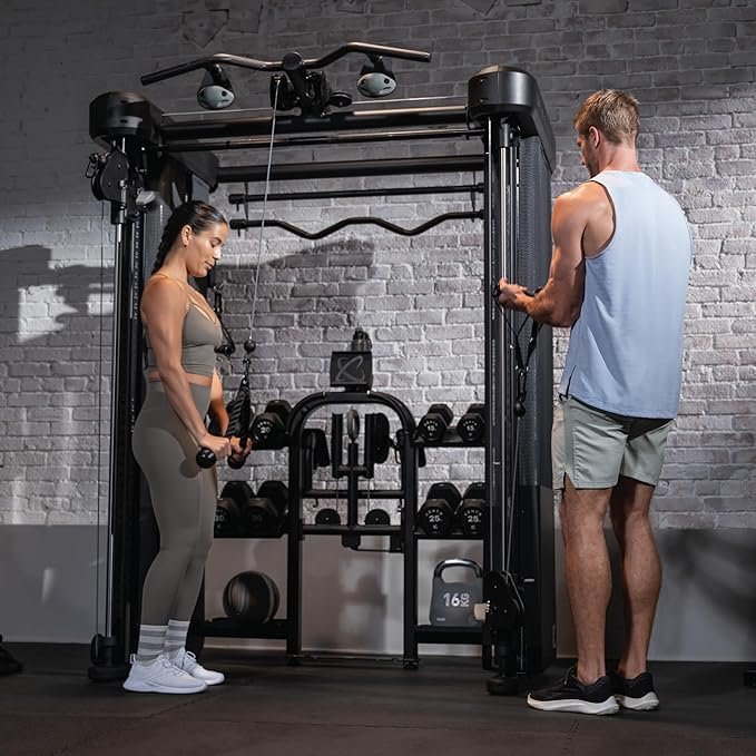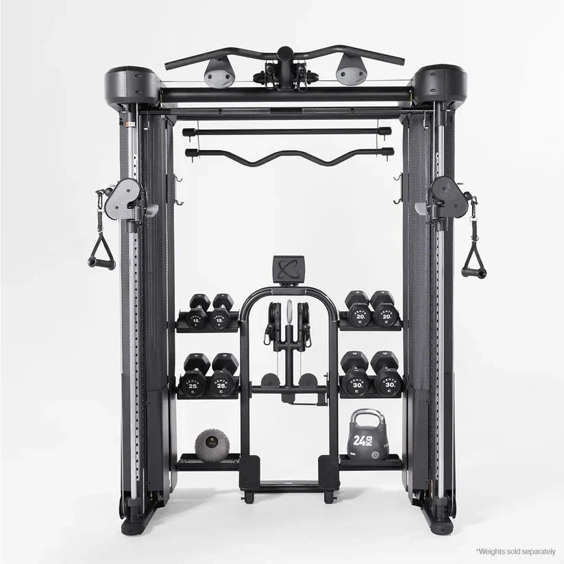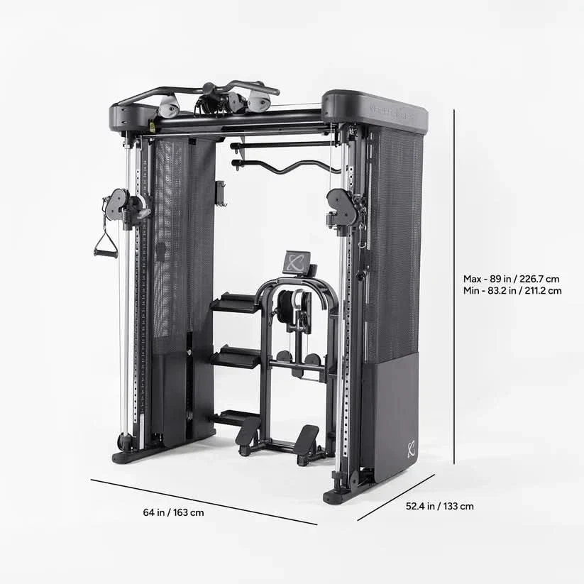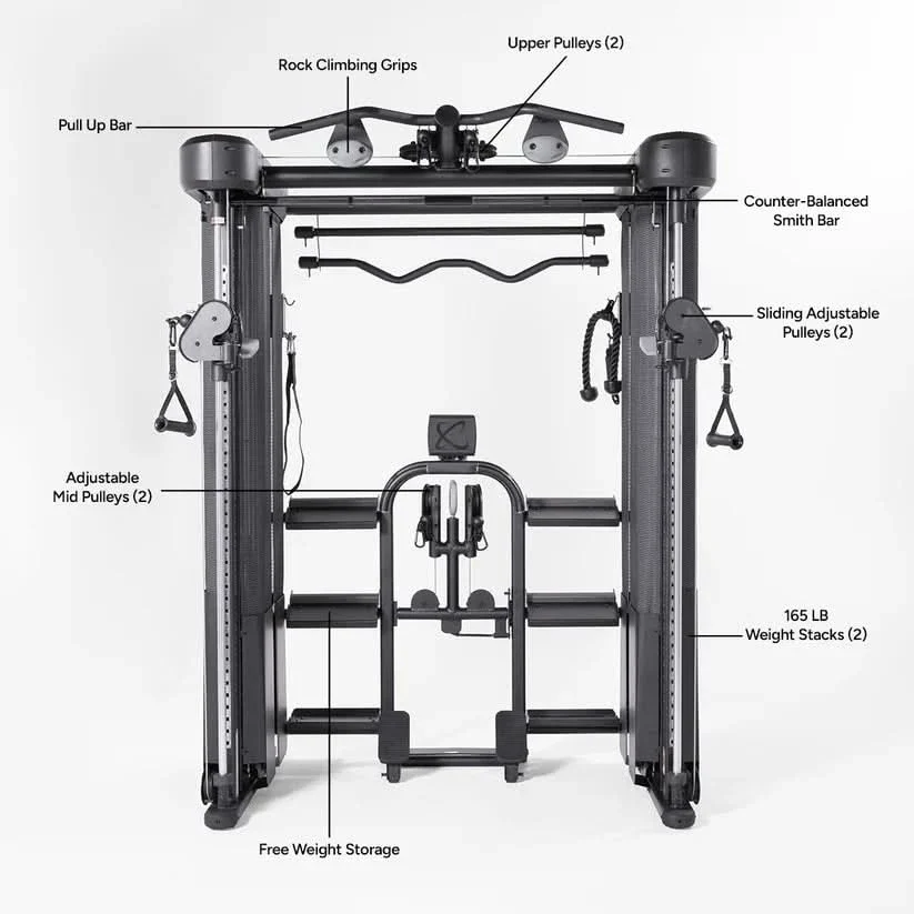 Customizable Workout Options: Features 40 adjustable pulley positions, a multi-grip pull-up bar, rock climbing grips, and integrated storage for dumbbells, kettlebells, and wall balls.