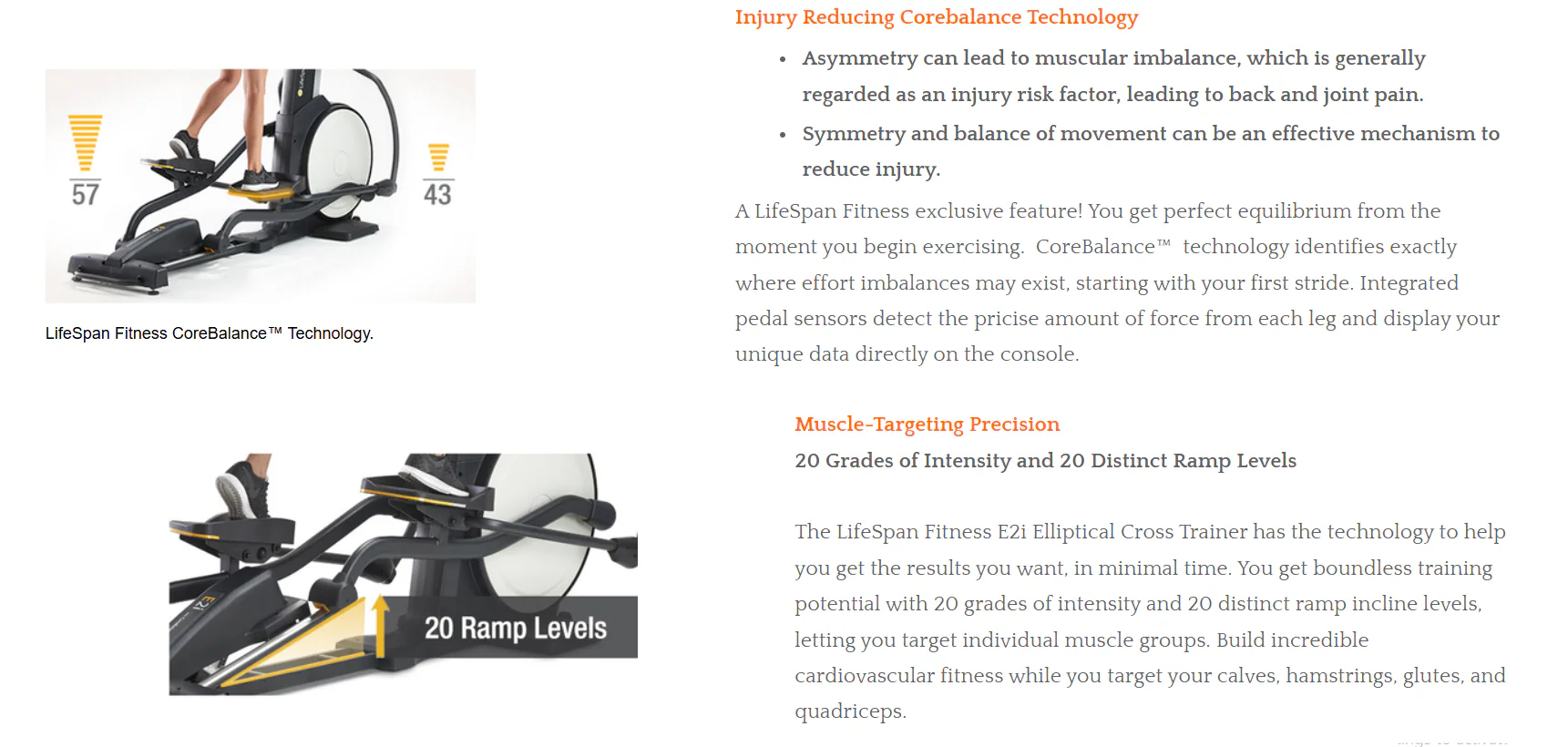 Injury-Reducing CoreBalance™ Technology: Detects leg effort imbalance using integrated pedal sensors to improve symmetry and reduce injury risks.