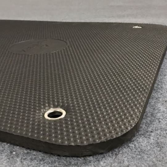 The textured finish on this gym mat gives the right amount of grip for stretches and more dynamic exercises. We have added two extra strong eyelets to the mat which measure 49.5cm apart (center to center) allowing this to be hung and stored away neatly on the Masterkraft Wall Mounted Hanging Rack.