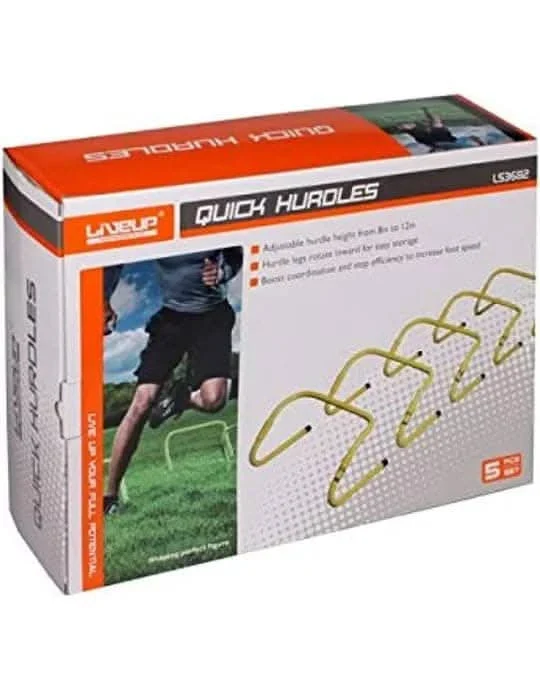 8-12 5 Pcs SetAdjustable Quick Hurdle set-Live upNot only folding, but also height adjustableQuick Hurdles LS3682 helps to strengthen and increase speed of legs.Plastic hurdles are very lightweight, portable, safe, durable and adjustable.You can choose from the height of 20 cm and 30 cm.