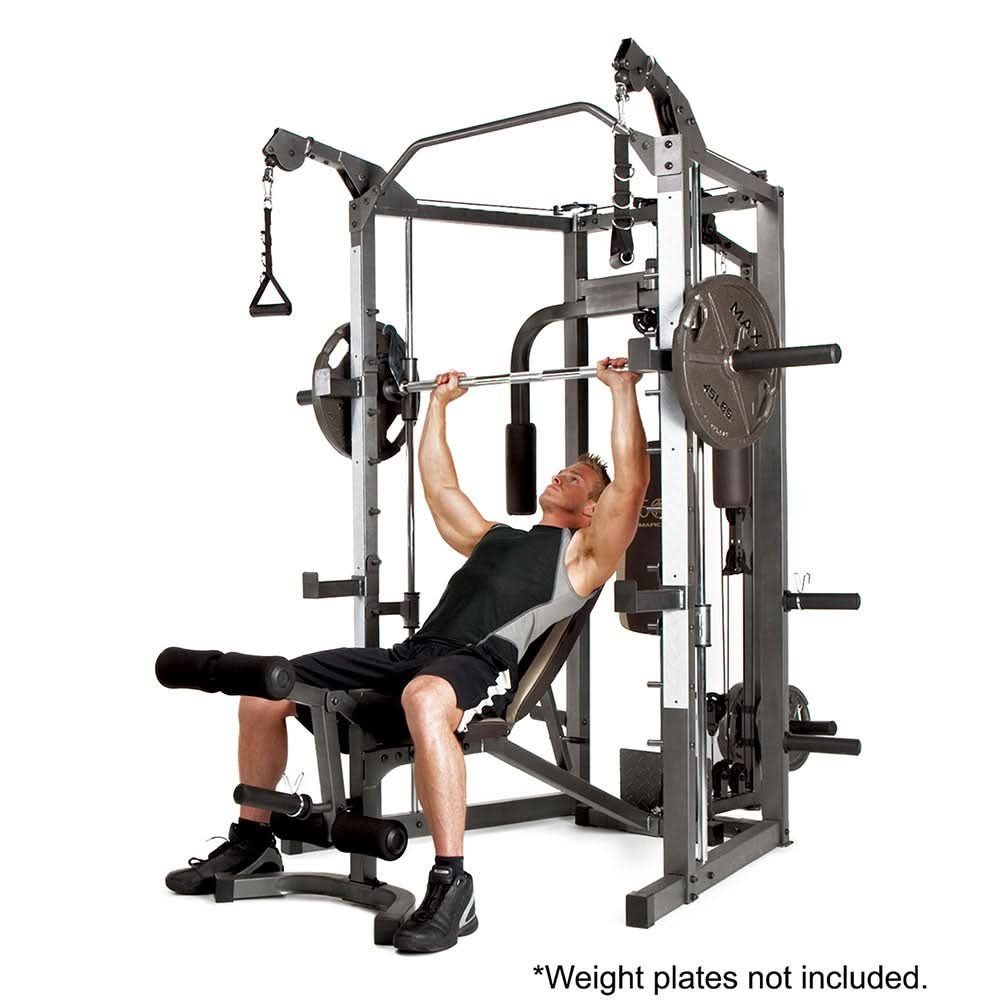 Get the best home gym with the Marcy SM-4008 Smith Machine Home Gym. The SM-4008 offers a full range of comprehensive resistance training options for all fitness goals. The solid construction of the SM-4008 is made of 14-gauge square steel tubing. The structure itself includes four convenient storage posts. The storage posts make it easy to organize your plates within arms reach of your workout.