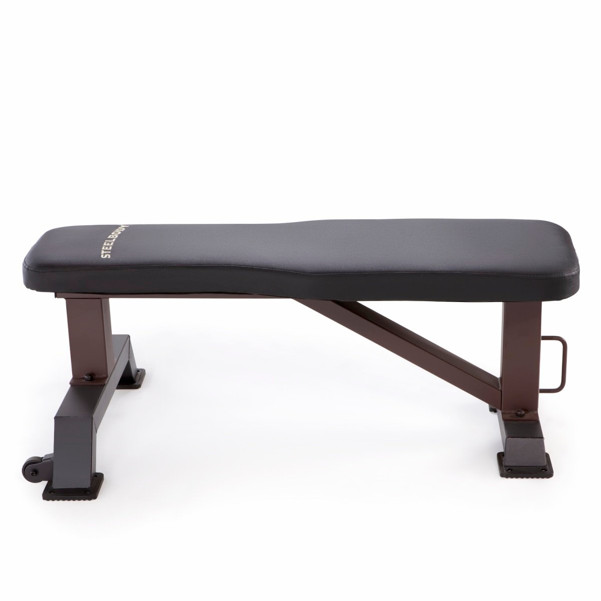 Heavy-duty steel construction and powder-coated finish optimize the durability of the SteelBody Flat Bench.