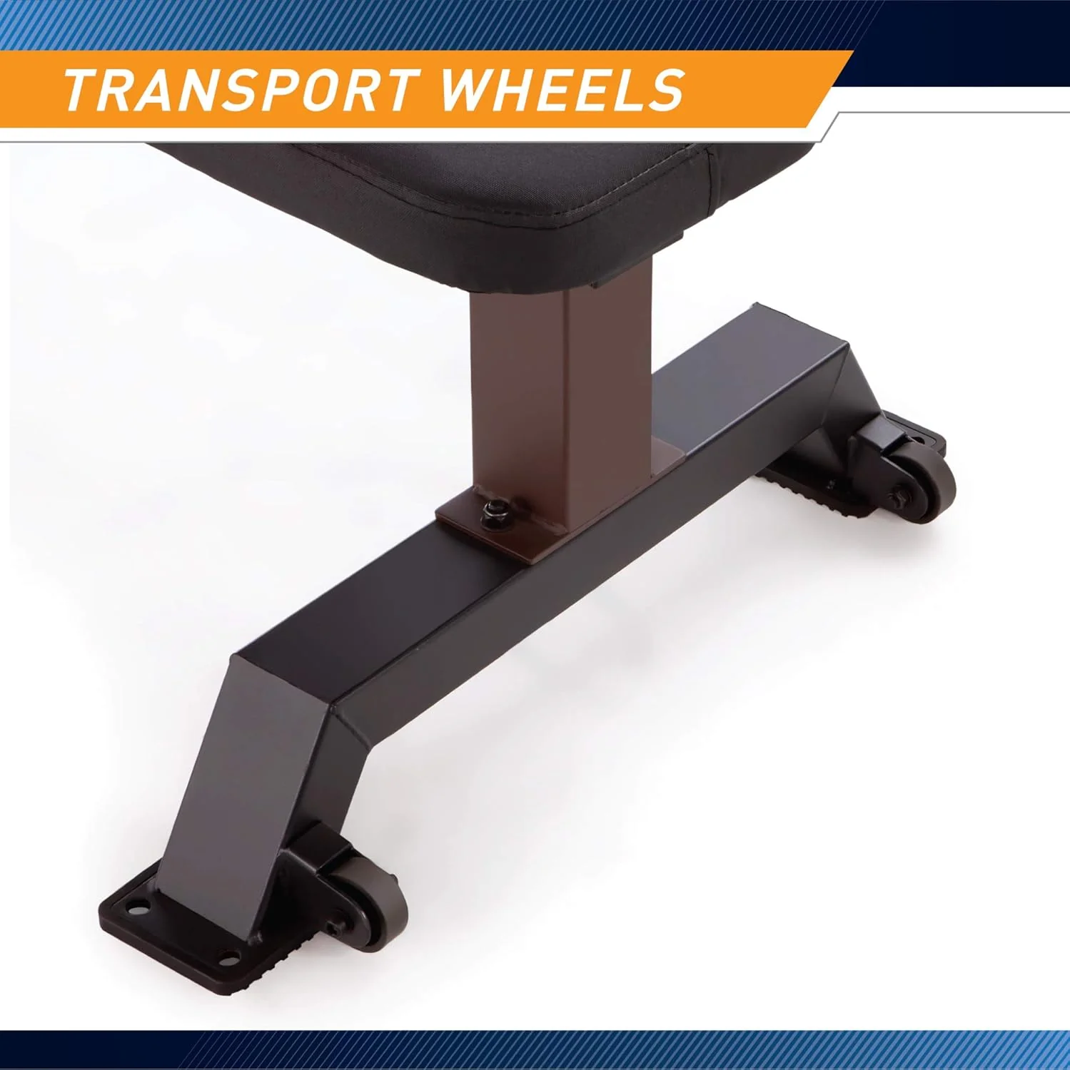 Portable & Convenient: Wheels and transport handle make moving and storing the bench effortless.