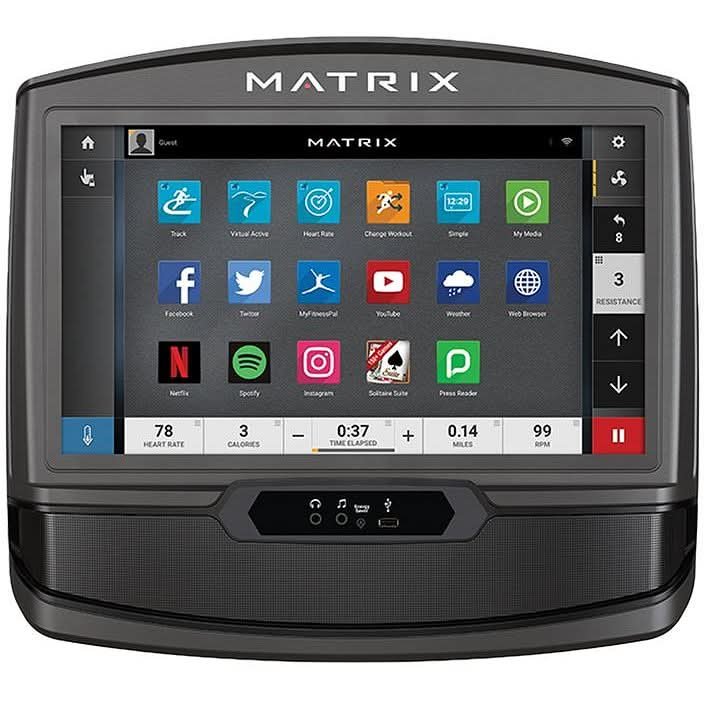 Tracks essential metrics: time, distance, speed, calories, resistance level, and heart rate.