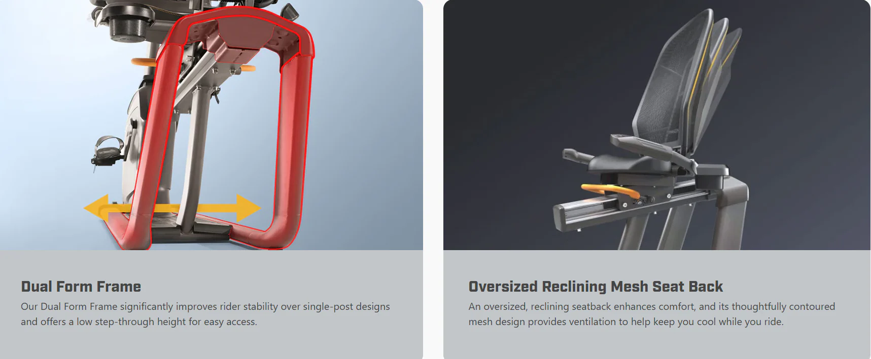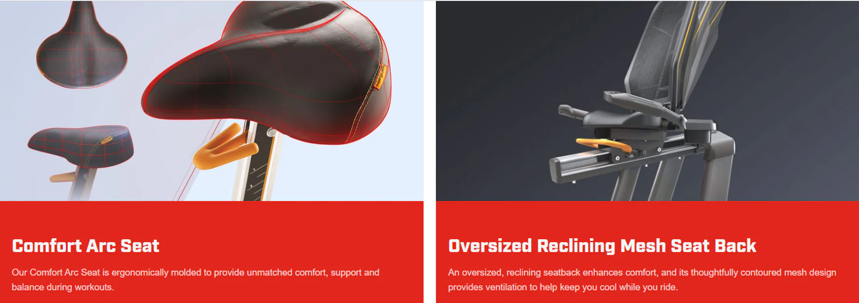 Reclined seating position minimizes strain and promotes comfort during long workouts.
