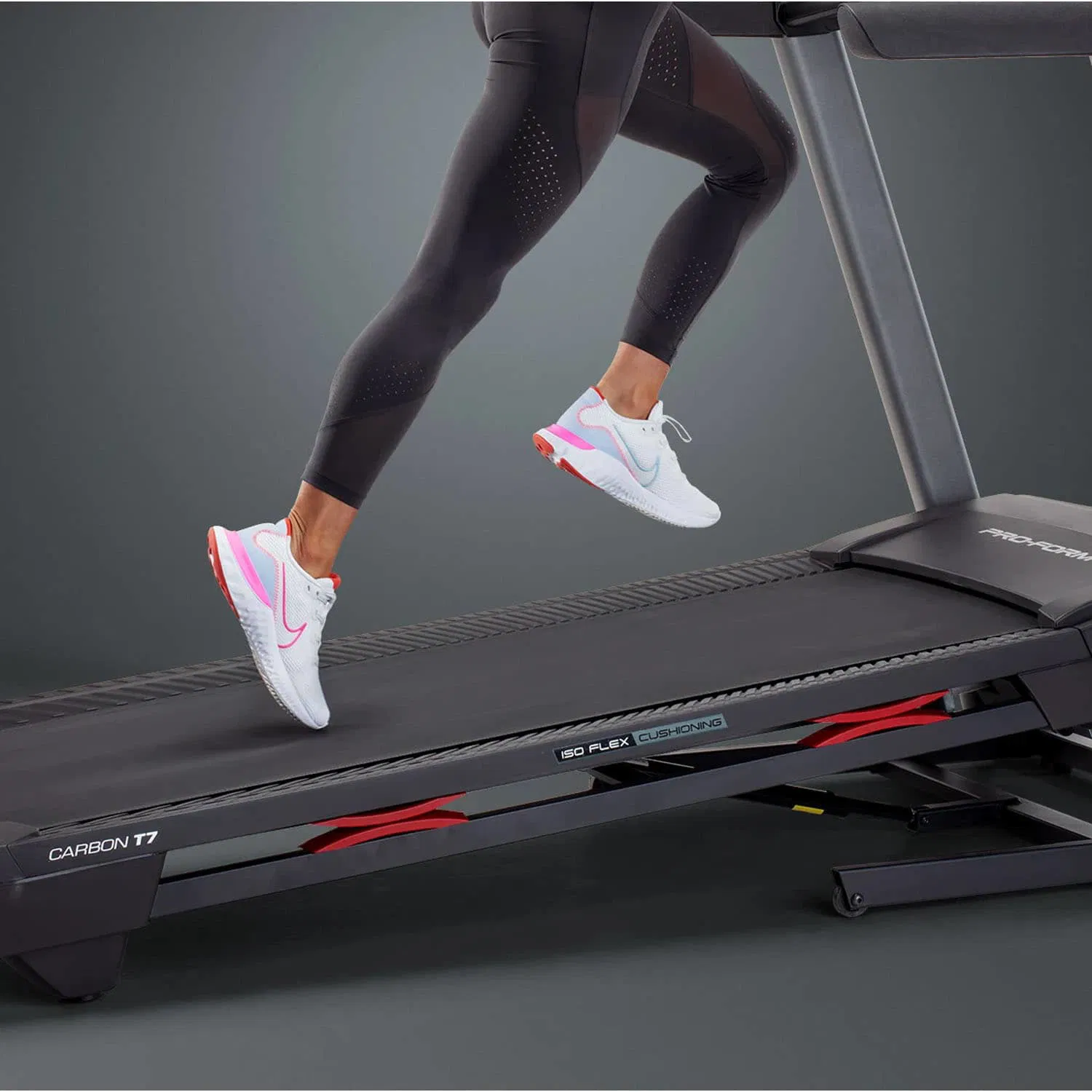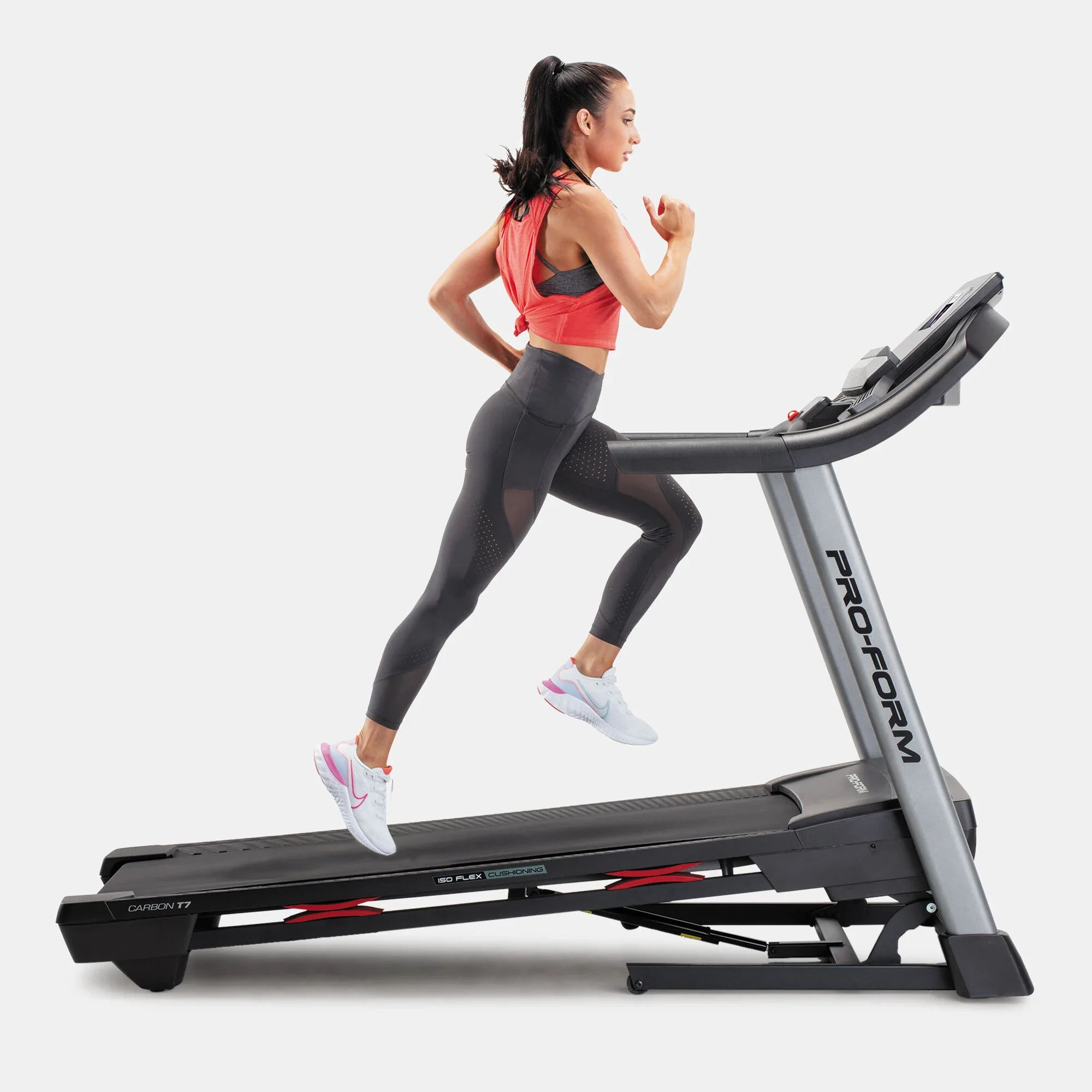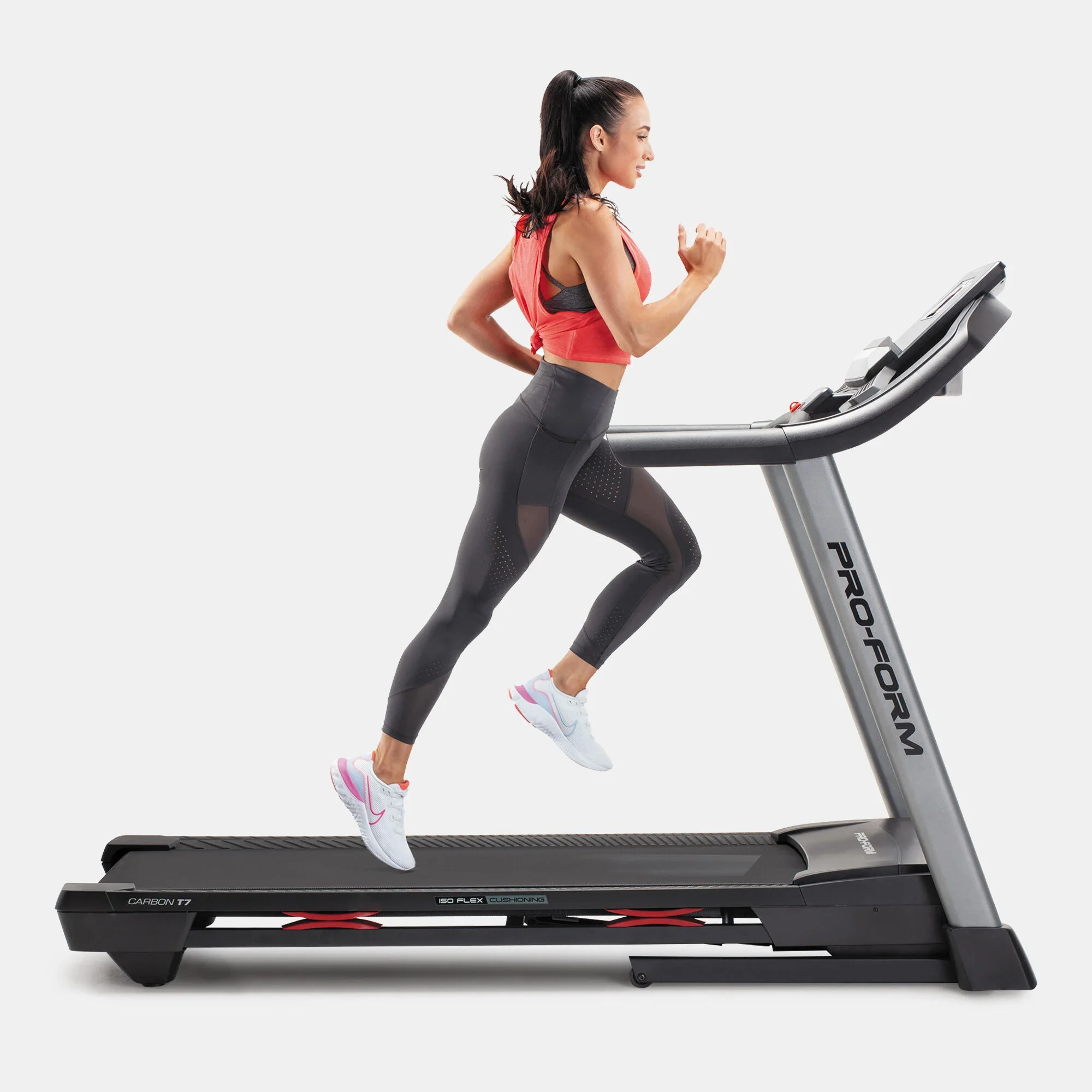 The ProForm Carbon T7 Smart Treadmill offers an immersive workout experience with its 7” HD touchscreen and included 30-day iFit membership. Enjoy personalized training sessions right at home, while the CoolAire™ fan and built-in cushioning ensure comfort during intense runs. Its SpaceSaver® design makes storage simple, making it an ideal addition to any home gym. Achieve your fitness goals with advanced technology and ergonomic features.