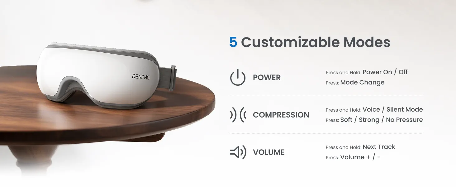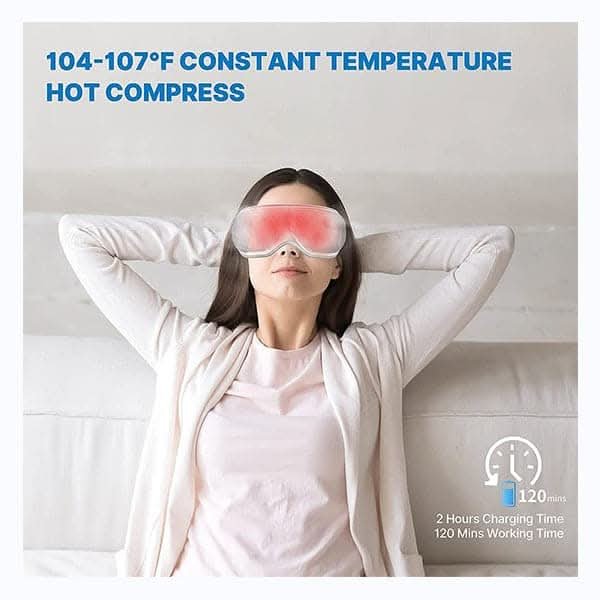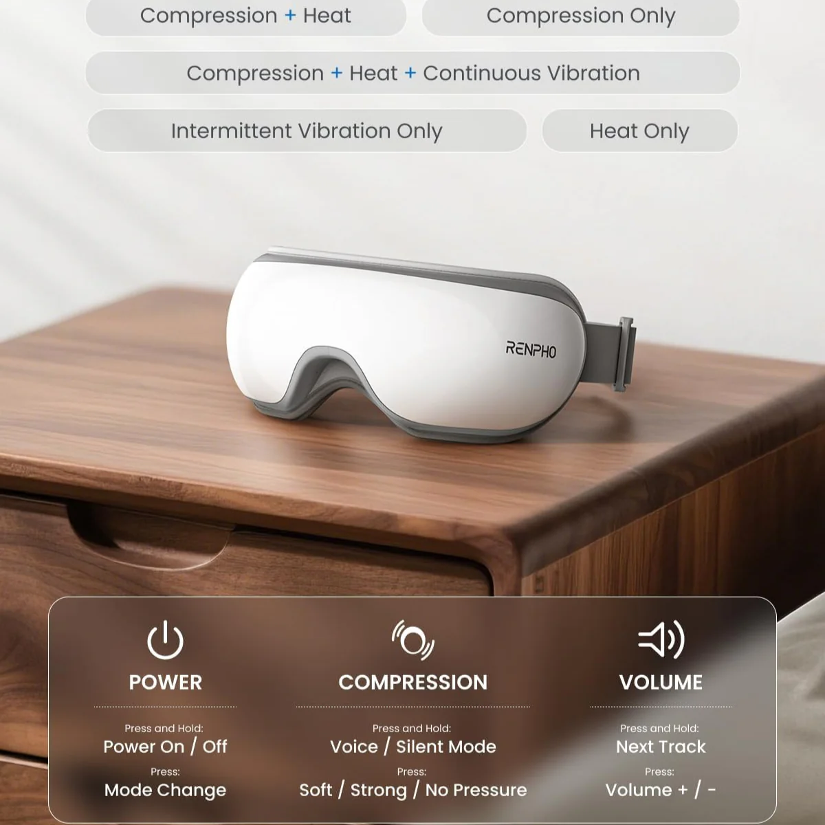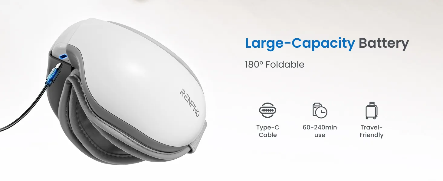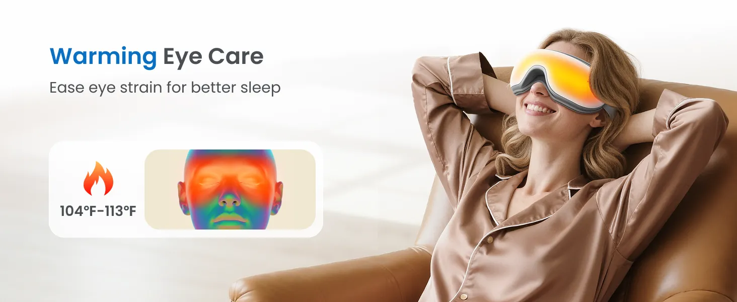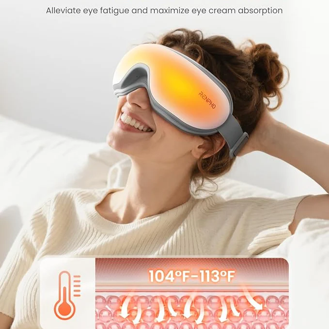 RENPHO eye massager built-in heating pads provide a comfortable temperature between 104 and 113 degrees Fahrenheit (40℃-45℃).