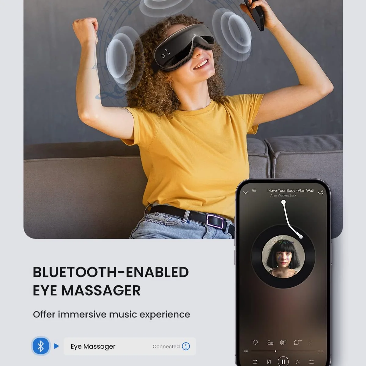 Renpho new version eye massager switches the modes randomly with remote and touches 2 methods. Connect your phone to the eye massager via Bluetooth and listen to your favorite music or relaxing sounds during your massage. Bluetooth Name: Eye Massager