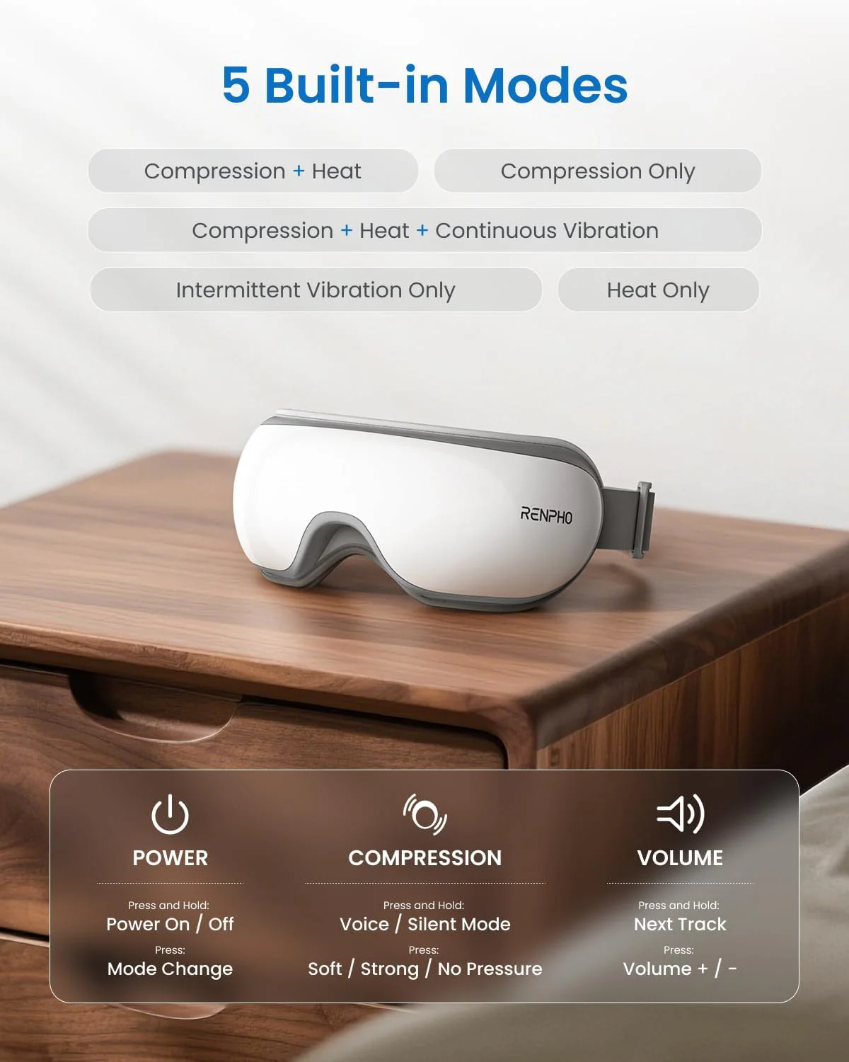 One of the greatest things about RENPHO’s eye massager is its portable nature and storage. Enjoy a relaxing massage during the journey with our eye massager. Great for traveling, home, office, and spa, rest, sleeping, etc.