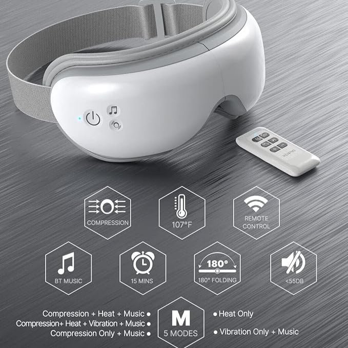 Built-in heating pads provide a comfortable temperature between 104-107°F (40-42°C). Great for relieving headaches & eye strain.