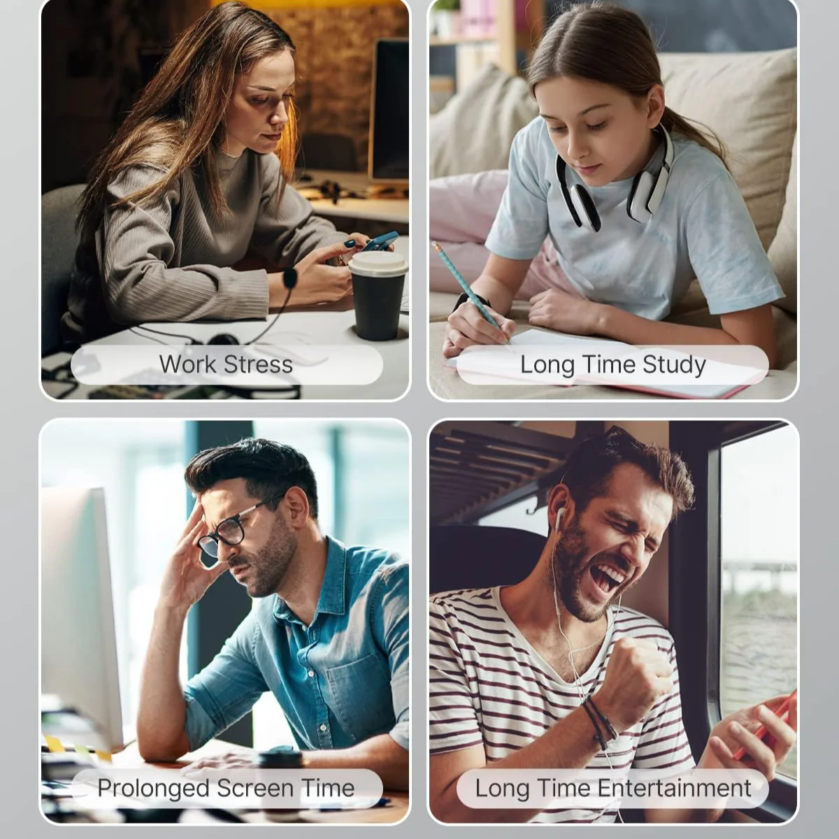 It’s an ideal choice for many people: teenagers who excessively use their mobile phone or tablet causing eye fatigue or myopia, office workers who use their computer every day, ladies who pay attention to exquisite beauty, who have dry eyes, and people who have stress, etc