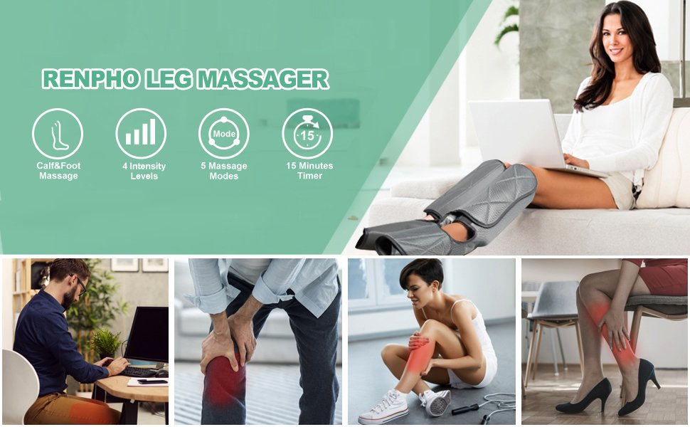 If you stand or sit for long periods of time, unable to get exercise, or are suffering from soreness from athletic training, you may suffer from leg fatigue, The RENPHO Leg Massager can help!