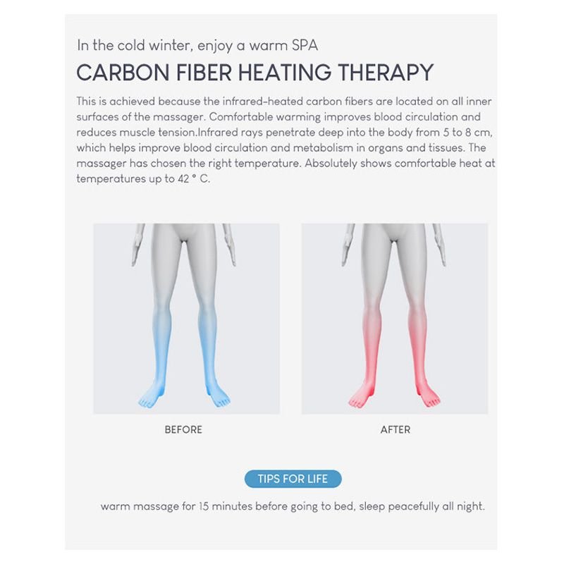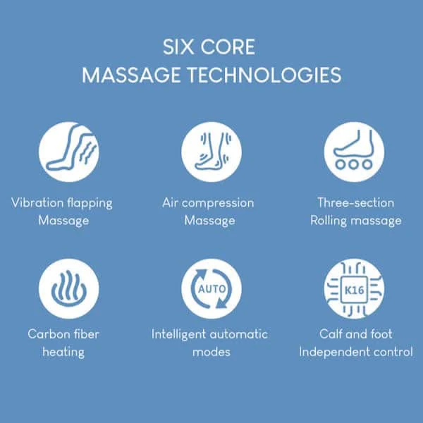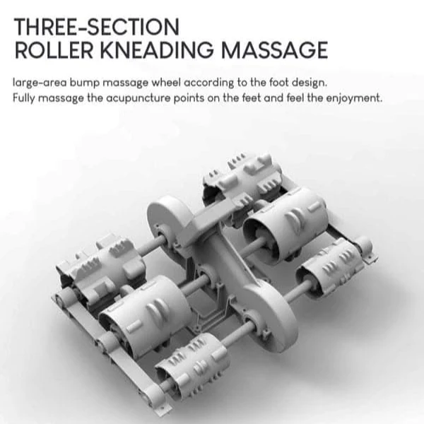 Enjoy the reflexology leg Massaging: K15 integrates vibration fluttering massage technology, air pressure massage, carbon fiber heating, and three-section foot roller massage as an innovative wheel foot massager.
