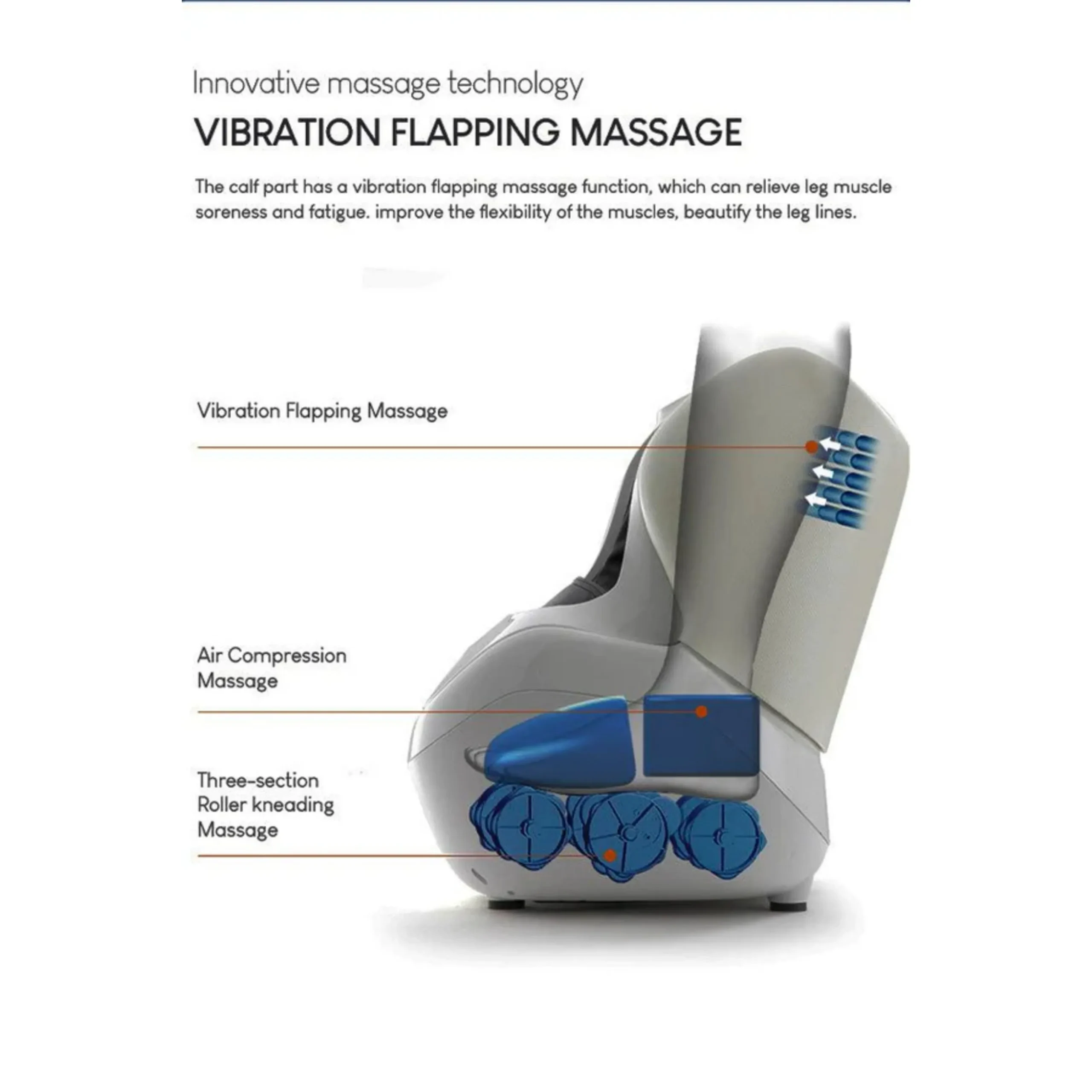 Air pressure massage: Built-in 10 massage airbags covered from the foot to the thigh, on the calves, we installed a shiatsu head means greater pressure function, a wide massage area and wrapped more efficiently to relax the leg muscles.