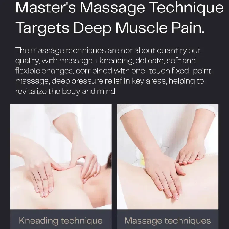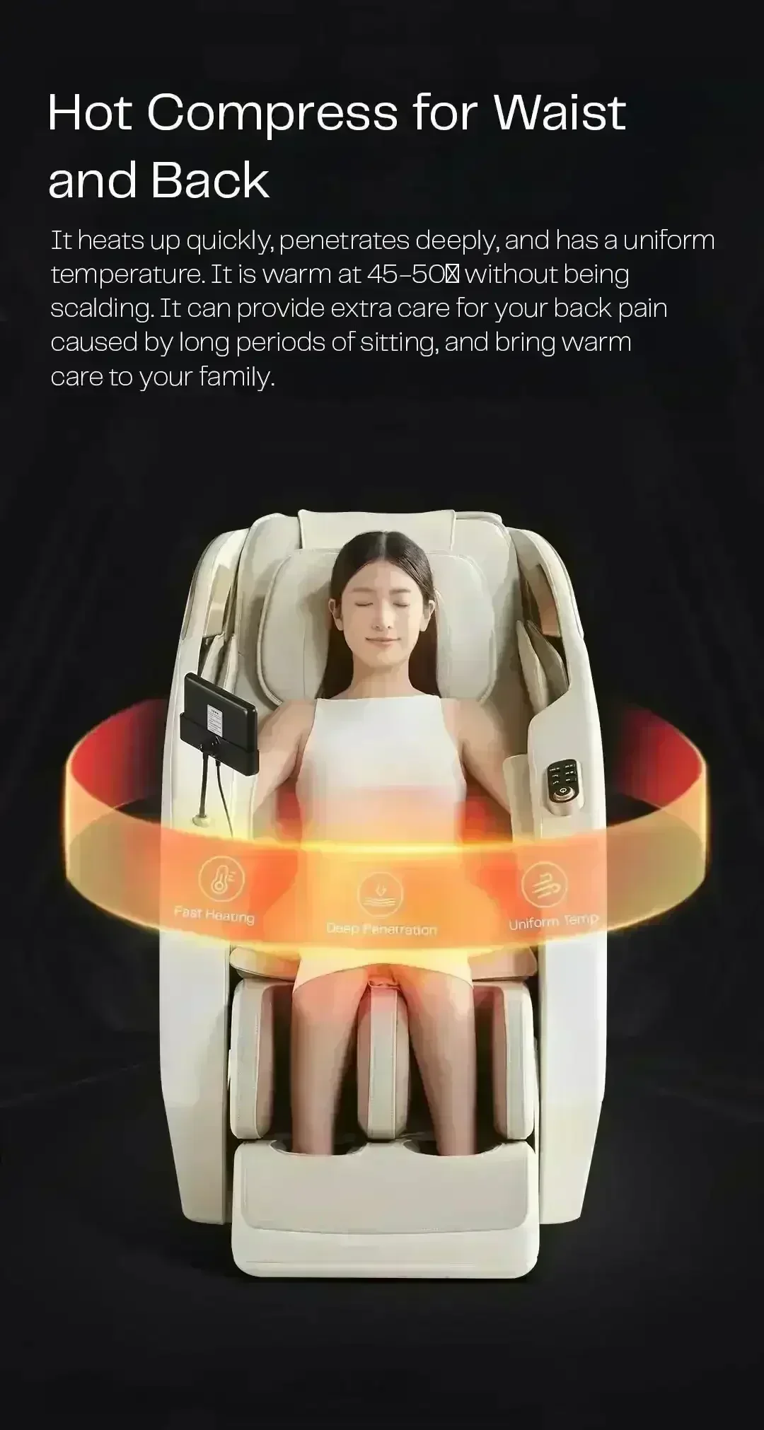 8D SL Track Massage System: Enjoy a full-body, deep-tissue massage with fixed 8D rollers along an extended SL track, providing precise relief from your neck down to your glutes.