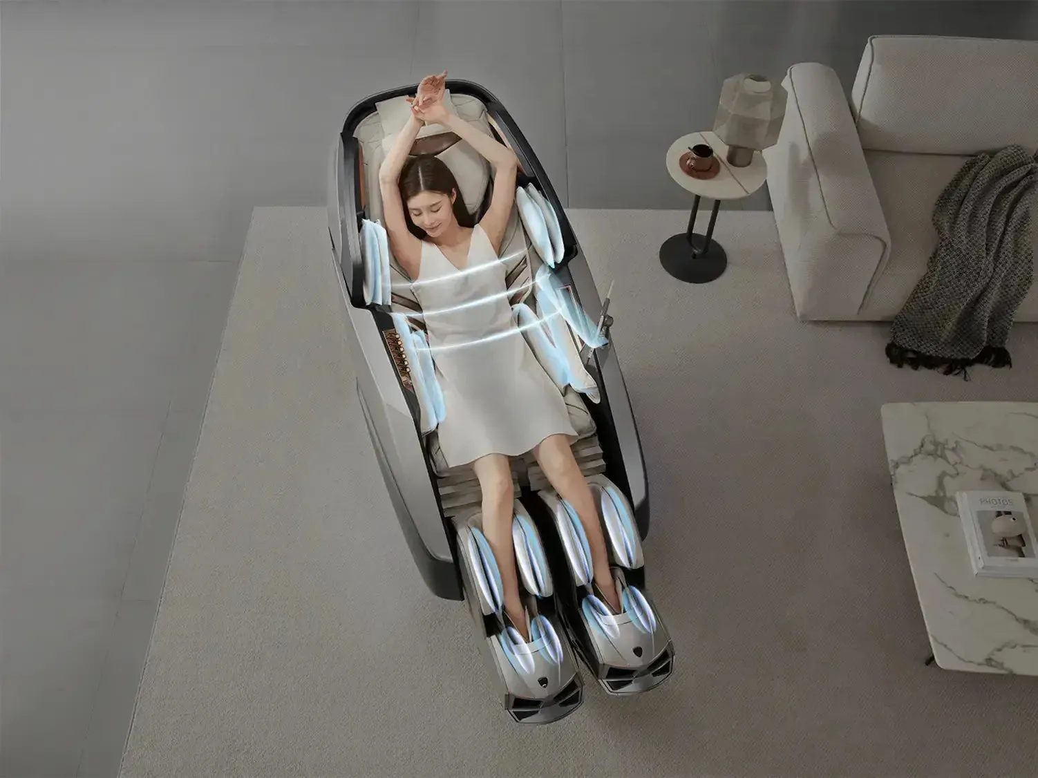 With this innovative technology, you can enjoy not only a soothing massage but also unique sensations such as a cycling experience and sky-walking. This cutting-edge chair sets a new standard in the industry, blending advanced features with exceptional comfort to elevate your wellness routine to new heights.