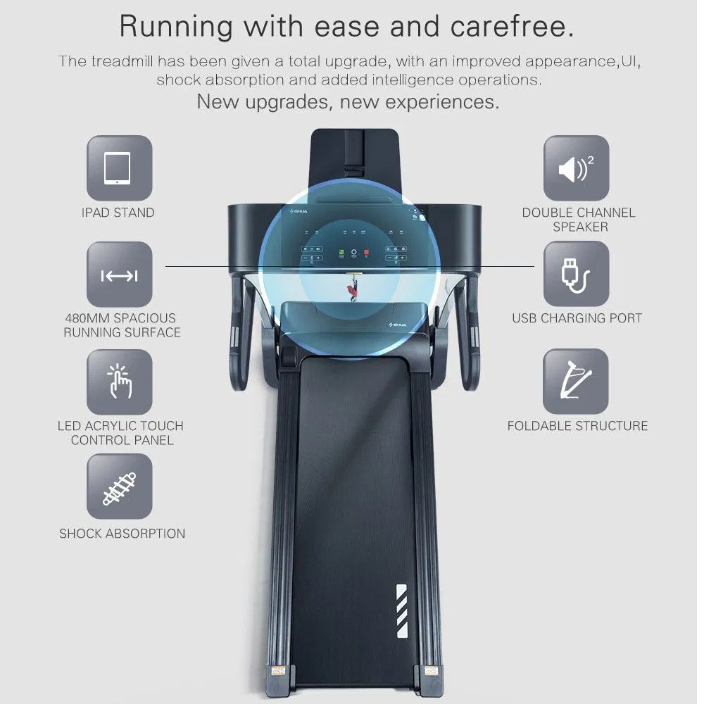 With speeds up to 18 km/h and incline up to 12%, it covers everything from walking and jogging to demanding runs.