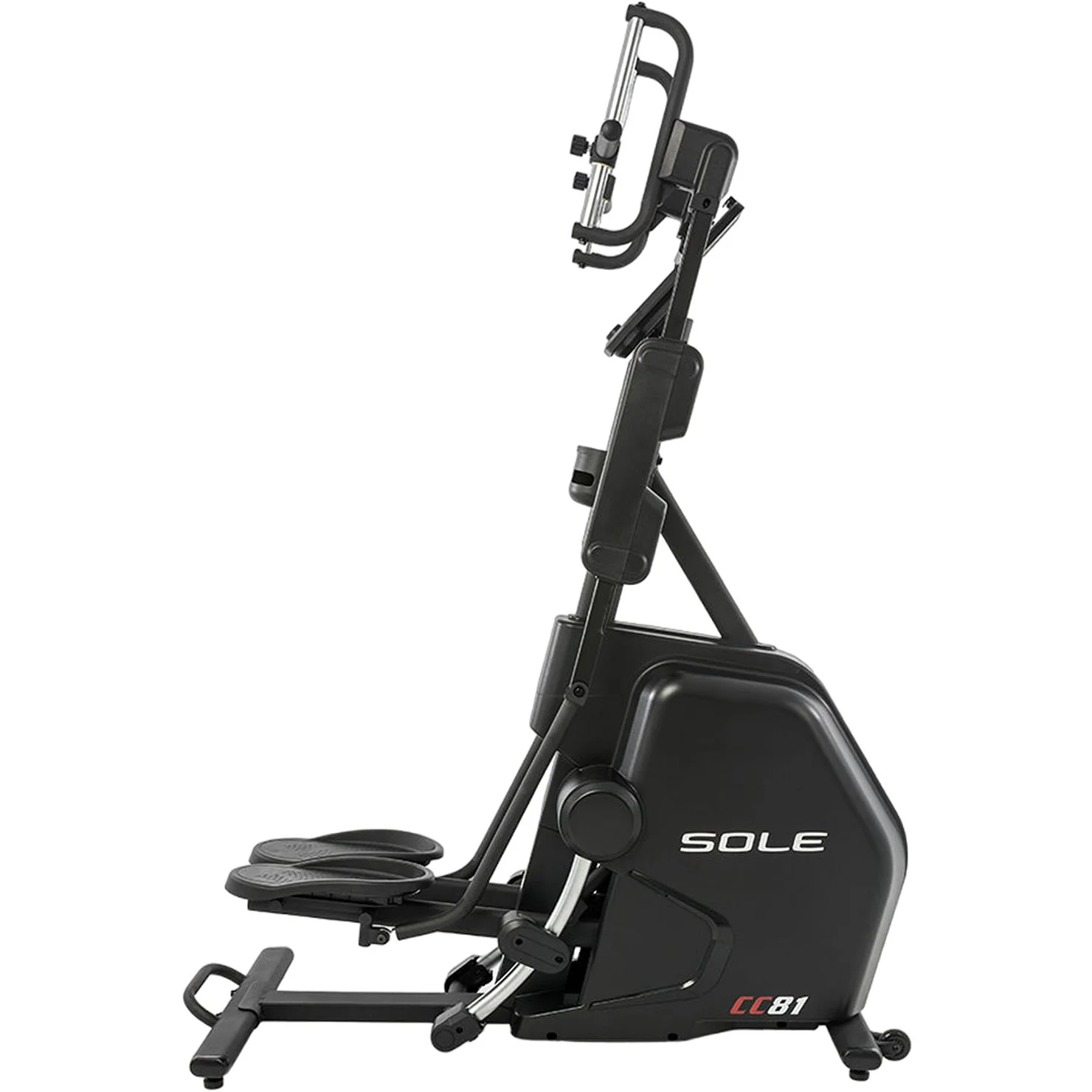 Designed for stability and safety, the Sole CC81 Cardio Climber features oversized, non-slip pedals measuring 38cm (15”) in size, ensuring secure footing throughout each workout session. Additional user-friendly features include a dual water bottle holder for hydration convenience, a tablet holder for entertainment or workout tracking, and levelling feet for added stability on uneven surfaces.