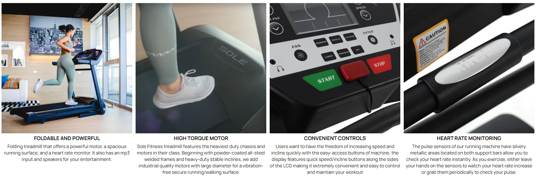 Sole’s latest entry-level treadmill offers the same quality frame and structures of the more expensive versions with a few less features. Boasting a 2.25hp motor, 19kph speed, 51cm wide running mat and 24 programs.