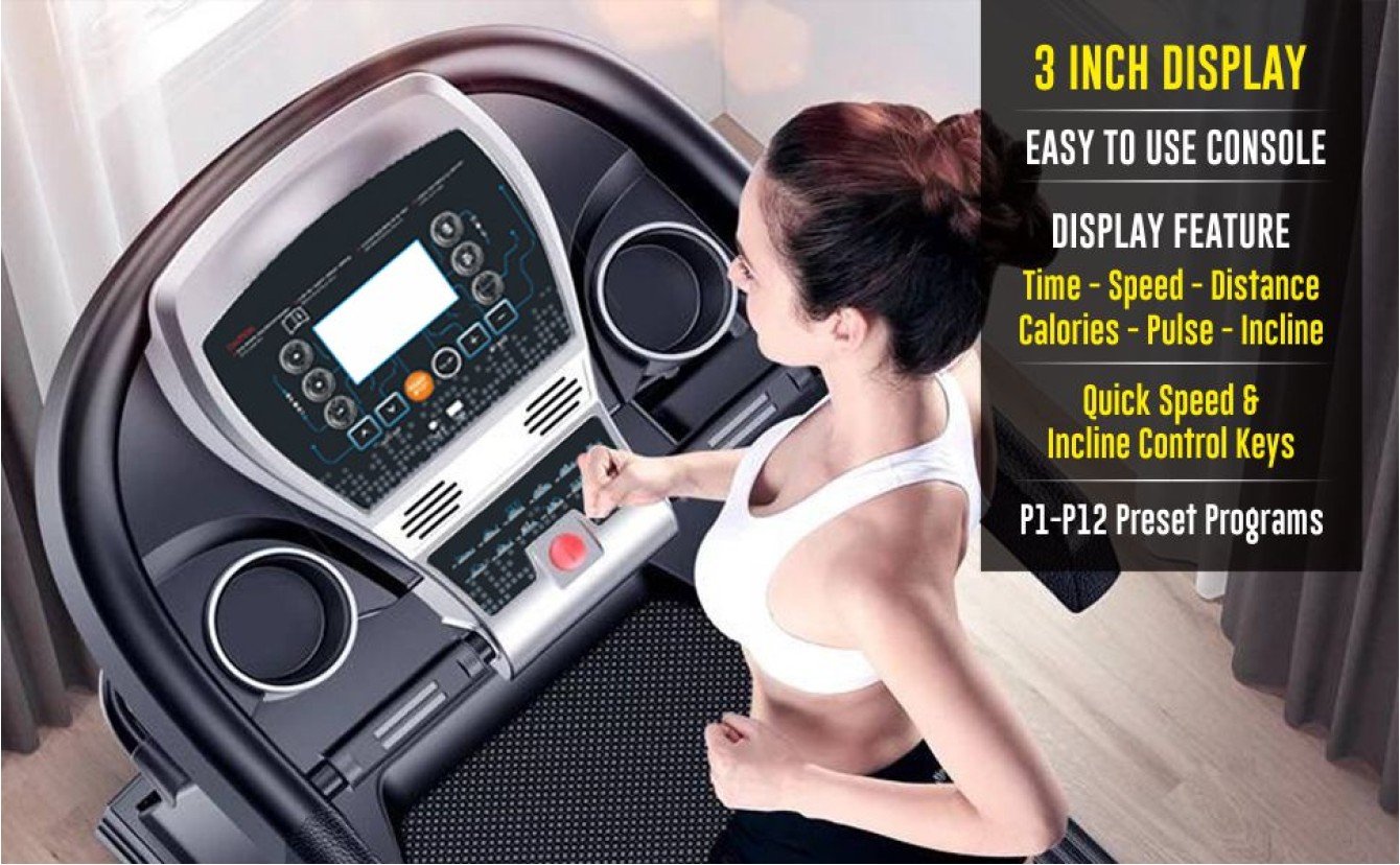 There are 12 Pre-Set programs to choose different workouts and manual mode settings of Speed, Distance, Time, Calories and Pulse for customized workouts.