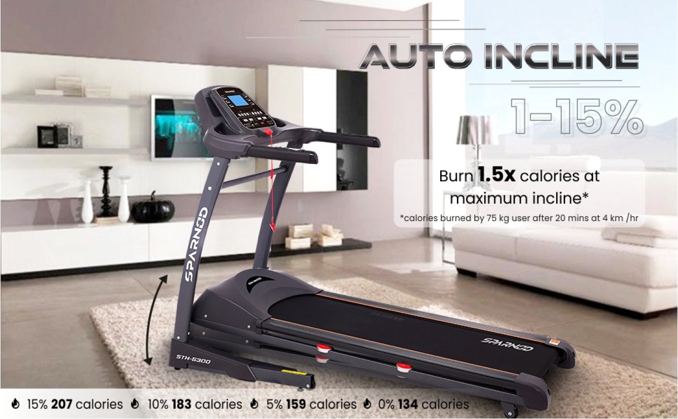 AUTOMATIC INCLINE — 15% Level Auto Inclination for an intense workout, you will enjoy jogging, walking, running, and cardio workout.