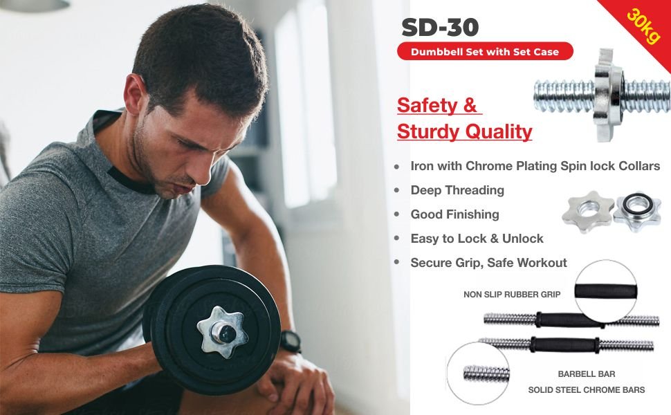 Safe & Convenient – Spin-lock collars and ergonomic handles make weight changes secure and easy.