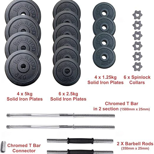 Versatile Dumbbell & Barbell Set – Includes 2 dumbbell bars, 1.5 m barbell bar, and spin-lock collars for easy adjustment.