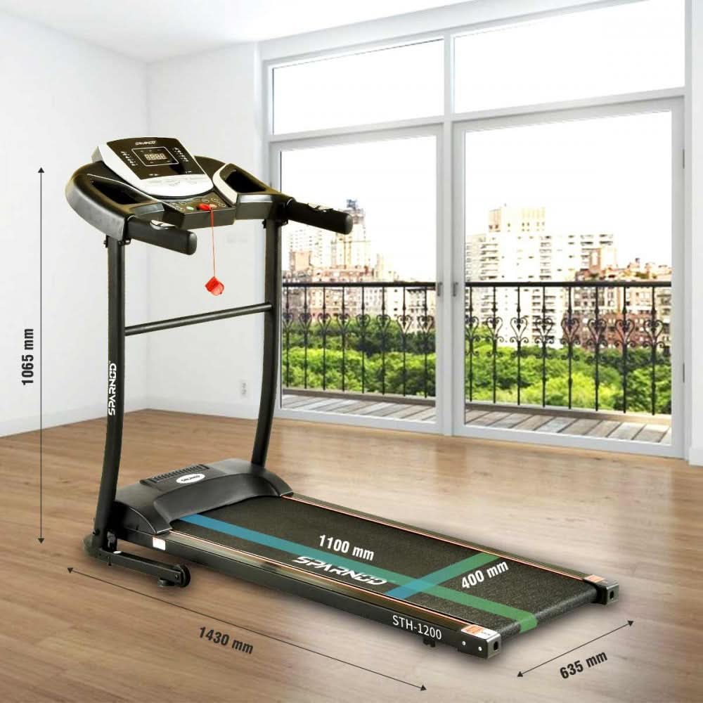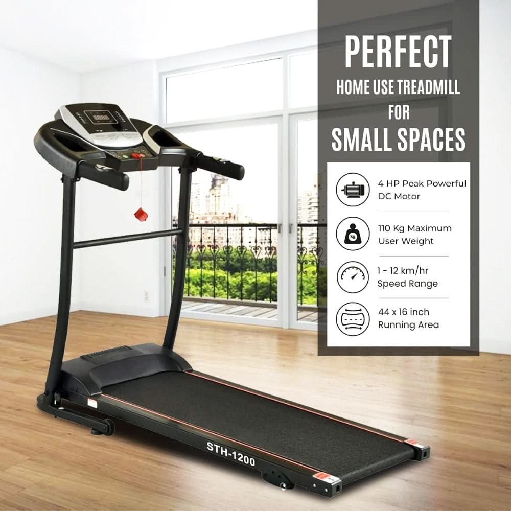 The STH-1200 is a highly automated and foldable treadmill that is perfect for fitness enthusiasts of all levels. With a 2.5 CHP/4PHP Motor, this machine can provide users with an efficient and safe workout experience at speeds ranging from 1-12 km/hr. Additionally, the machine is foldable for easy storage, making it a great choice for any home gym.