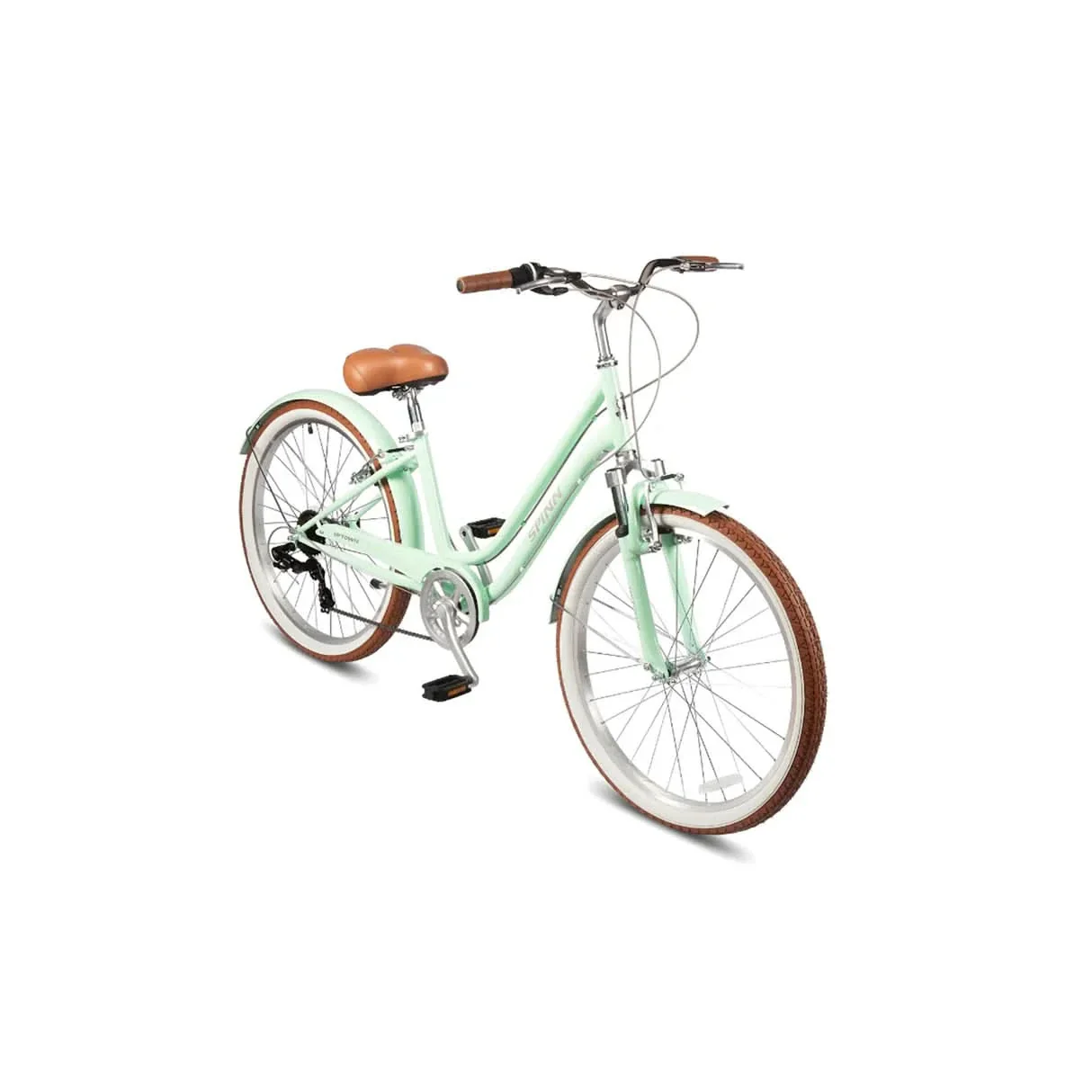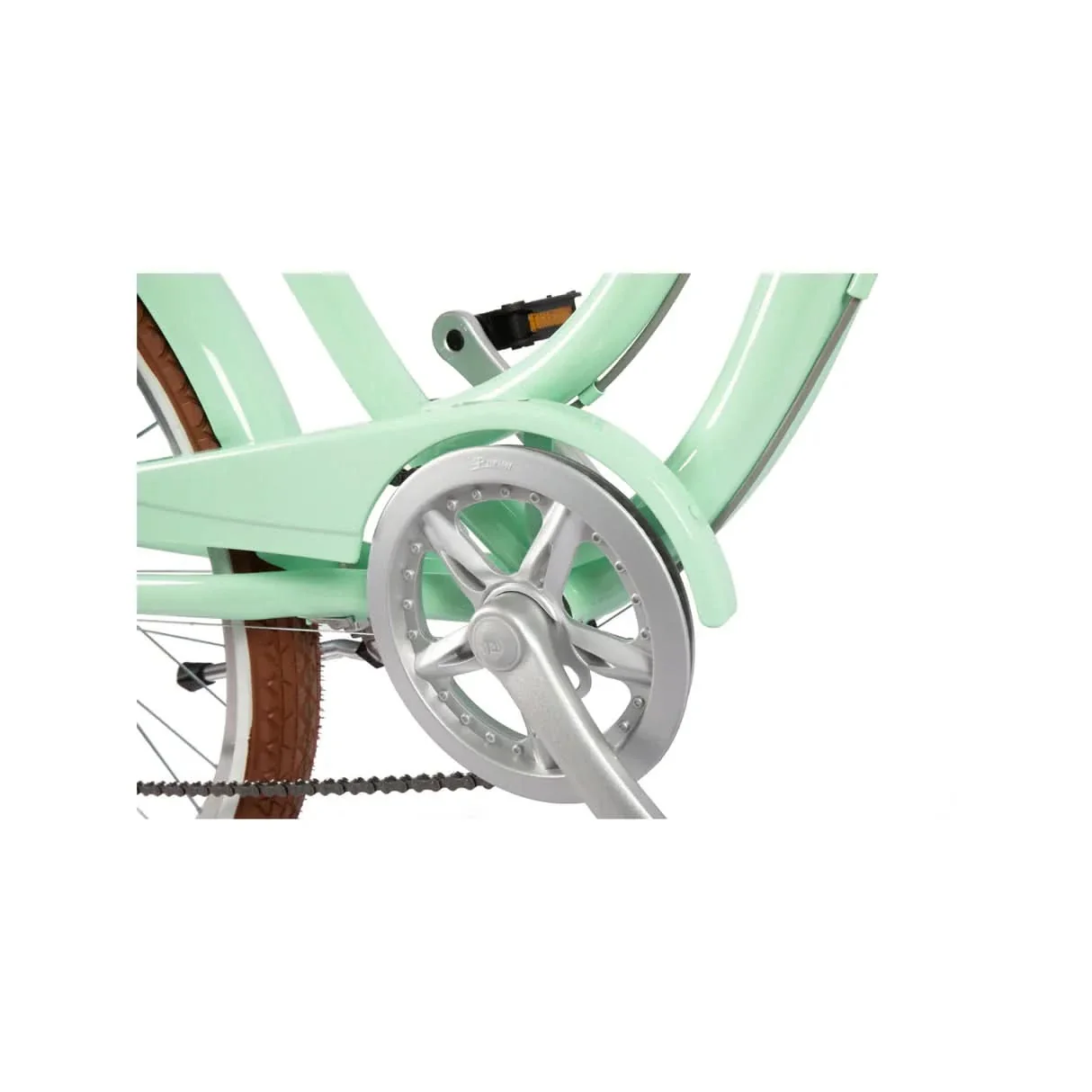 The SPINN Uptown Ladies is the perfect choice for active women who value comfort and style. This city bike features a low frame, making it easy to mount and dismount. With its wide, soft saddle and suspension fork, the Uptown minimizes even the smallest road vibrations. The handlebar and saddle are adjustable in height and angle for optimal positioning. The bicycle chain is additionally protected by a guard, preventing clothing from getting dirty. The combination of elegant design and high-quality materials makes the Uptown an ideal companion for city or countryside rides.