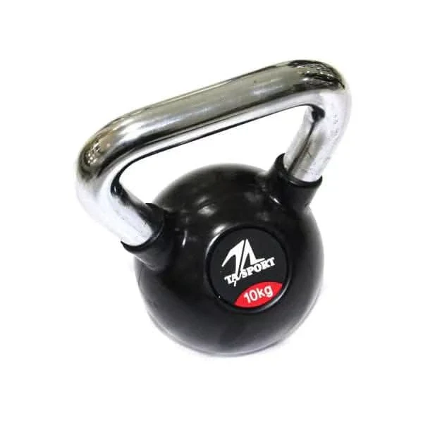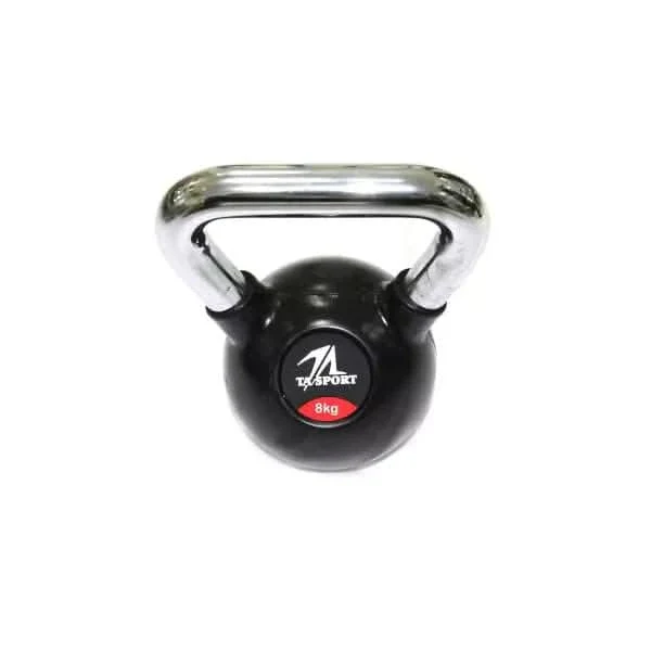 Enhance your strength training with the Ta Sport Black Rubber Kettlebell, featuring a chrome handle for a firm, comfortable grip. Available in weights ranging from 4 kg to 32 kg, this kettlebell is perfect for improving balance, endurance, and muscle tone. Its durable rubber coating protects floors, making it ideal for home gyms or fitness studios. Sold individually, it’s suitable for all fitness levels.