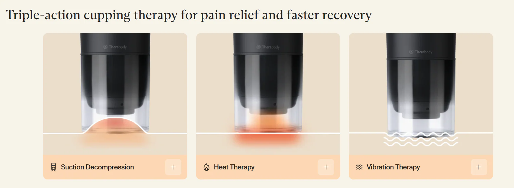 TheraCup is taking Therabody’s expertise in recovery to the next level by combining the benefits of traditional cupping with our cutting edge Therma Vibration Technology. Bringing suction, heat and vibration together to create an easy to use digitized cupping experience that optimizes localized relief and recovery, so you can get back to moving freely.