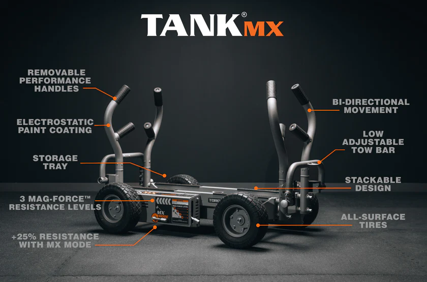 Elevate your group training sessions with the TANK MX Push Sled, the most powerful and versatile push sled in the TANK series. Built for high-intensity workouts on any surface, the TANK MX is engineered to challenge athletes at every level with its enhanced magnetic resistance and rugged design. Whether you’re training outdoors or indoors, the TANK MX adapts to your intensity, making it the perfect tool for team-based conditioning.