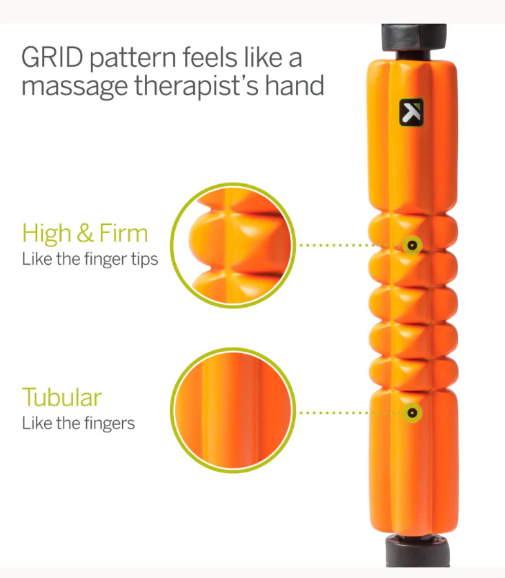 Wrapped in EVA foam and featuring the patent-pending GRID 3-dimensional surface, the massage stick replicates the feeling of a massage therapist’s hands to channel nutrients directly to the tissue.
