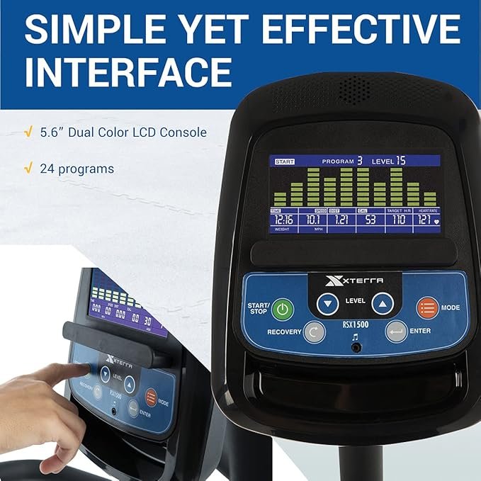 Hand pulse grips for accurate heart rate monitoring.