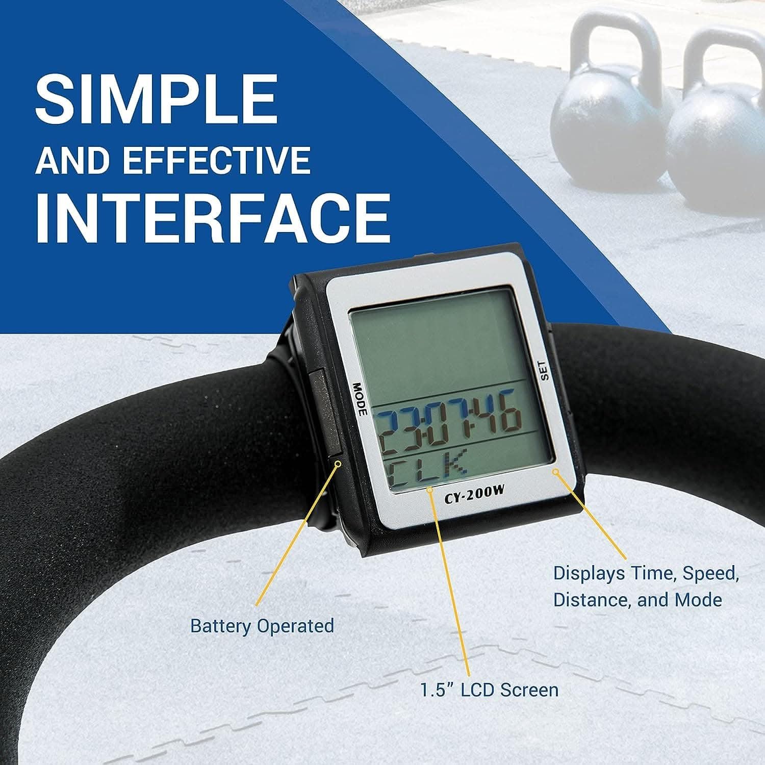 Non-slip handlebars ensure a secure grip during intense sessions.