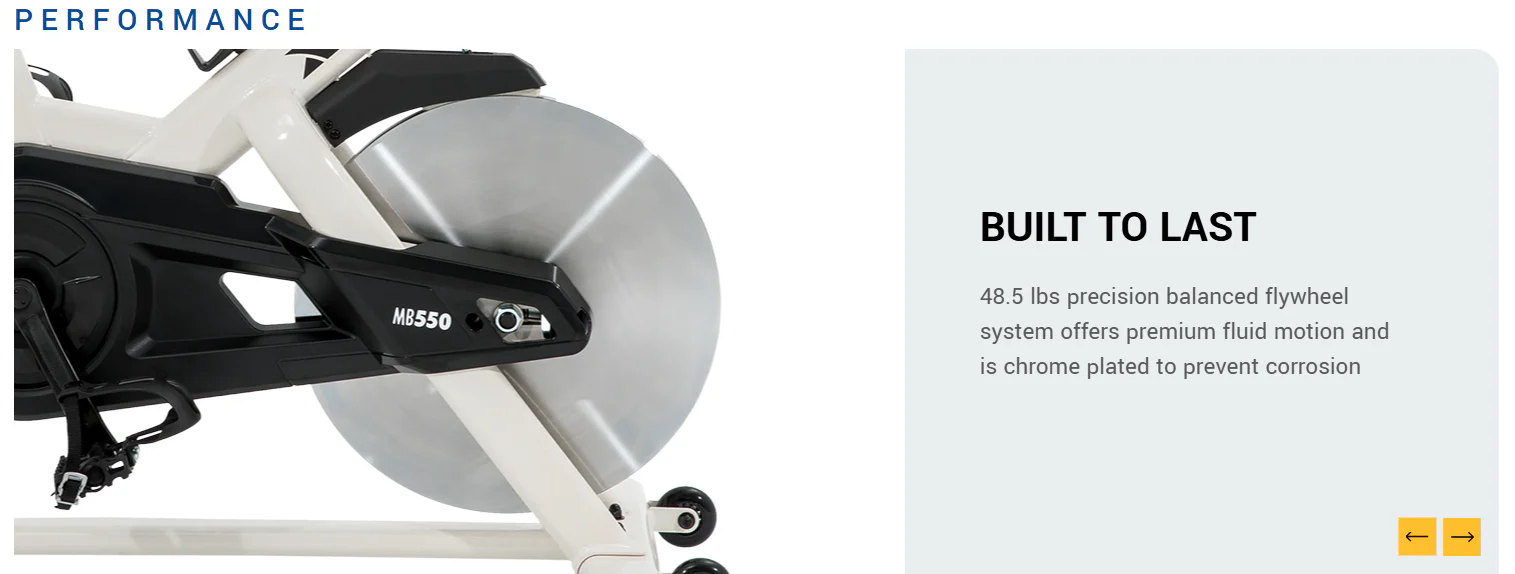 48.5 lb flywheel ensures stable and fluid pedaling.