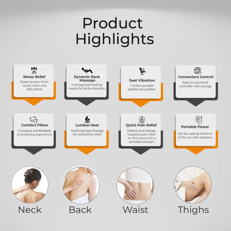 16 Massage Heads: Targets key areas to deliver a deep tissue massage for full back relief.